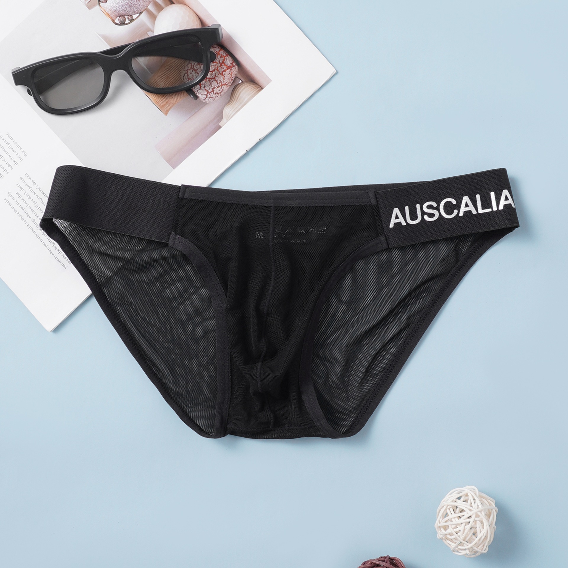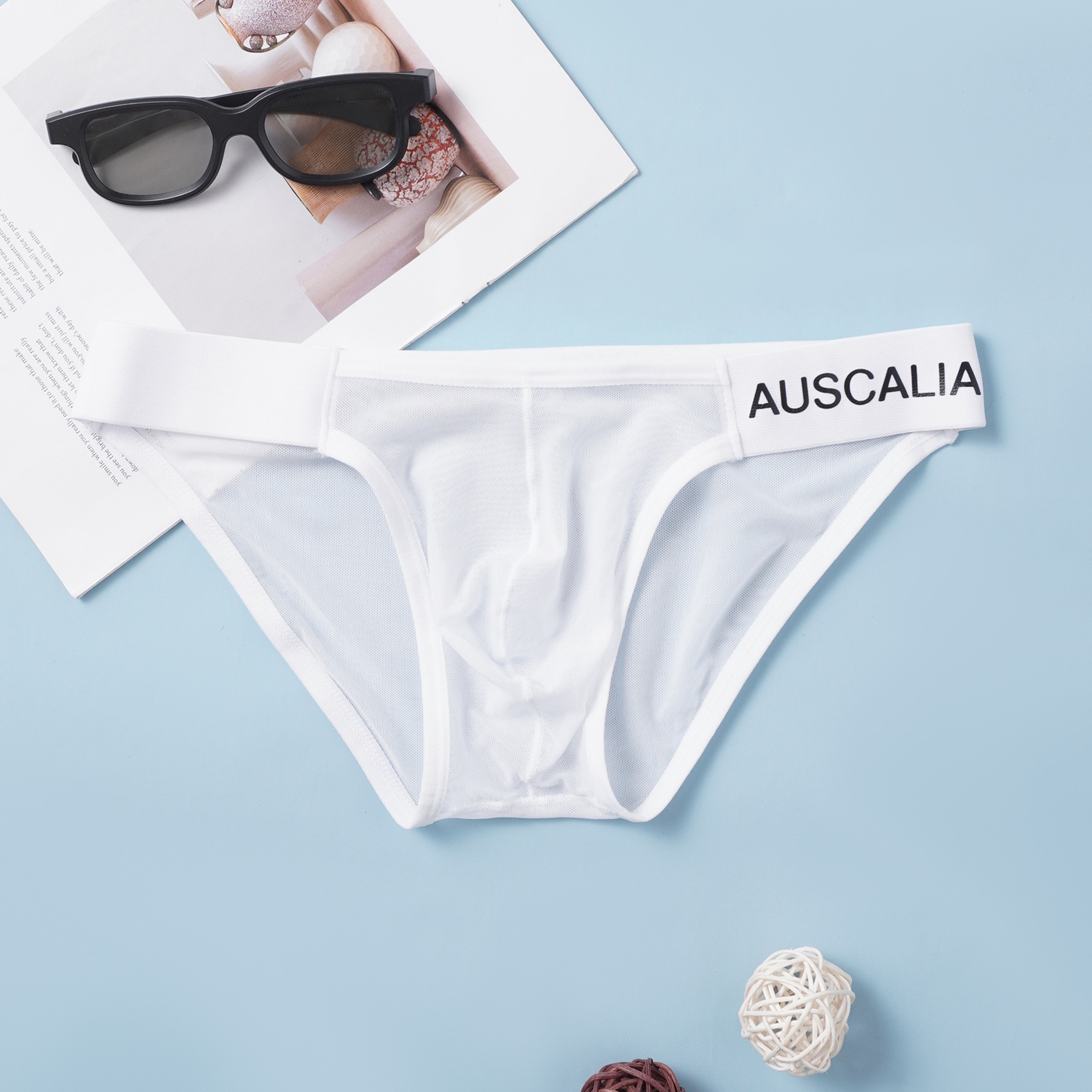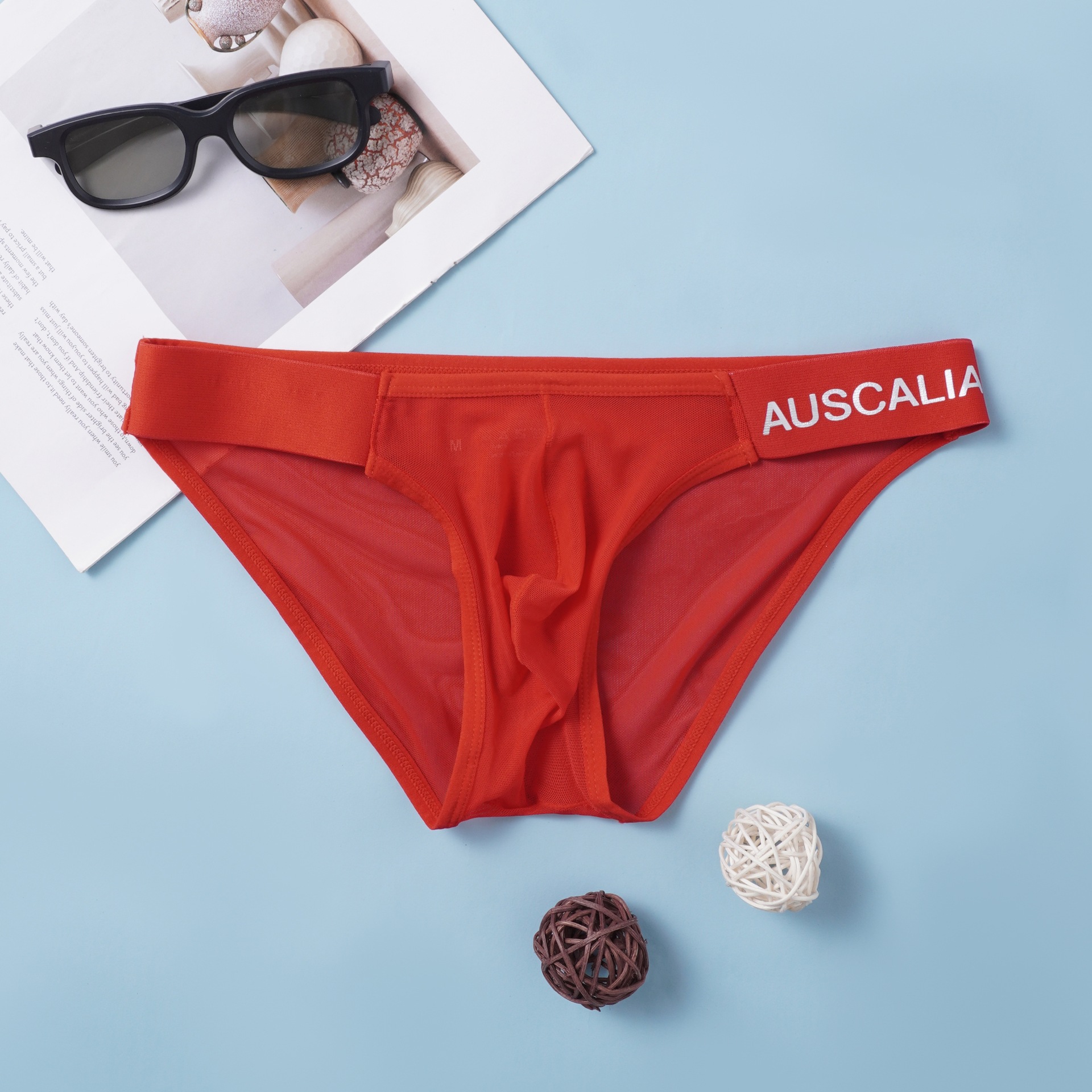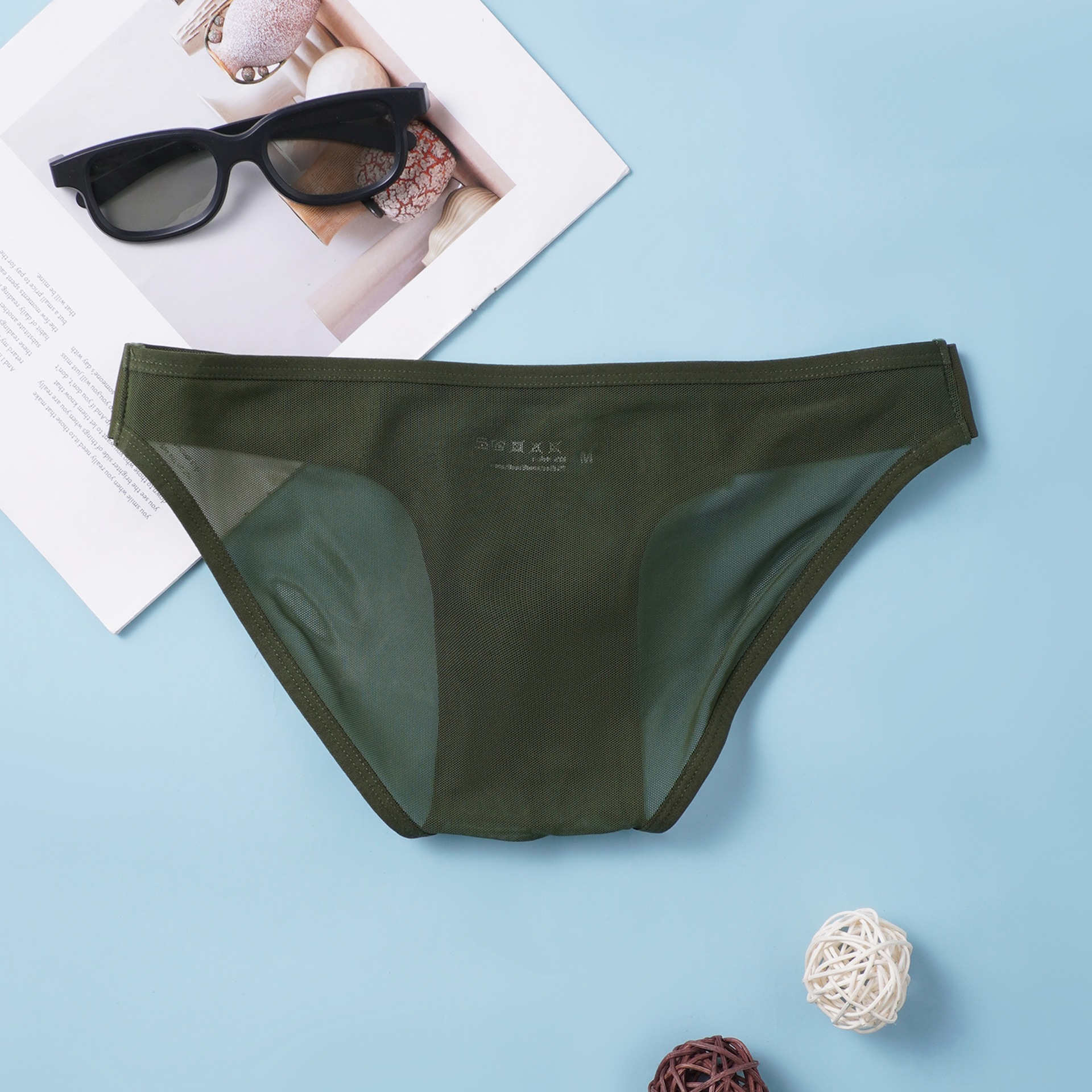 남성용 브리프 낮은 허리 섹시한 메쉬 솔리드 컬러 아이스 실크 얇은 통기성 U 볼록 쿨 하이 포크 브리프