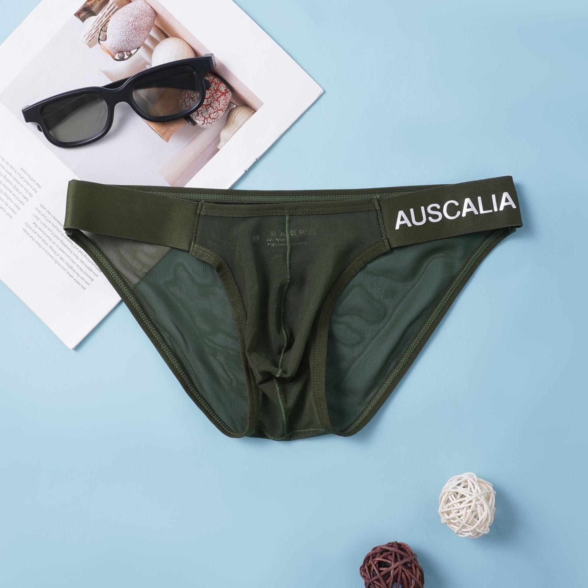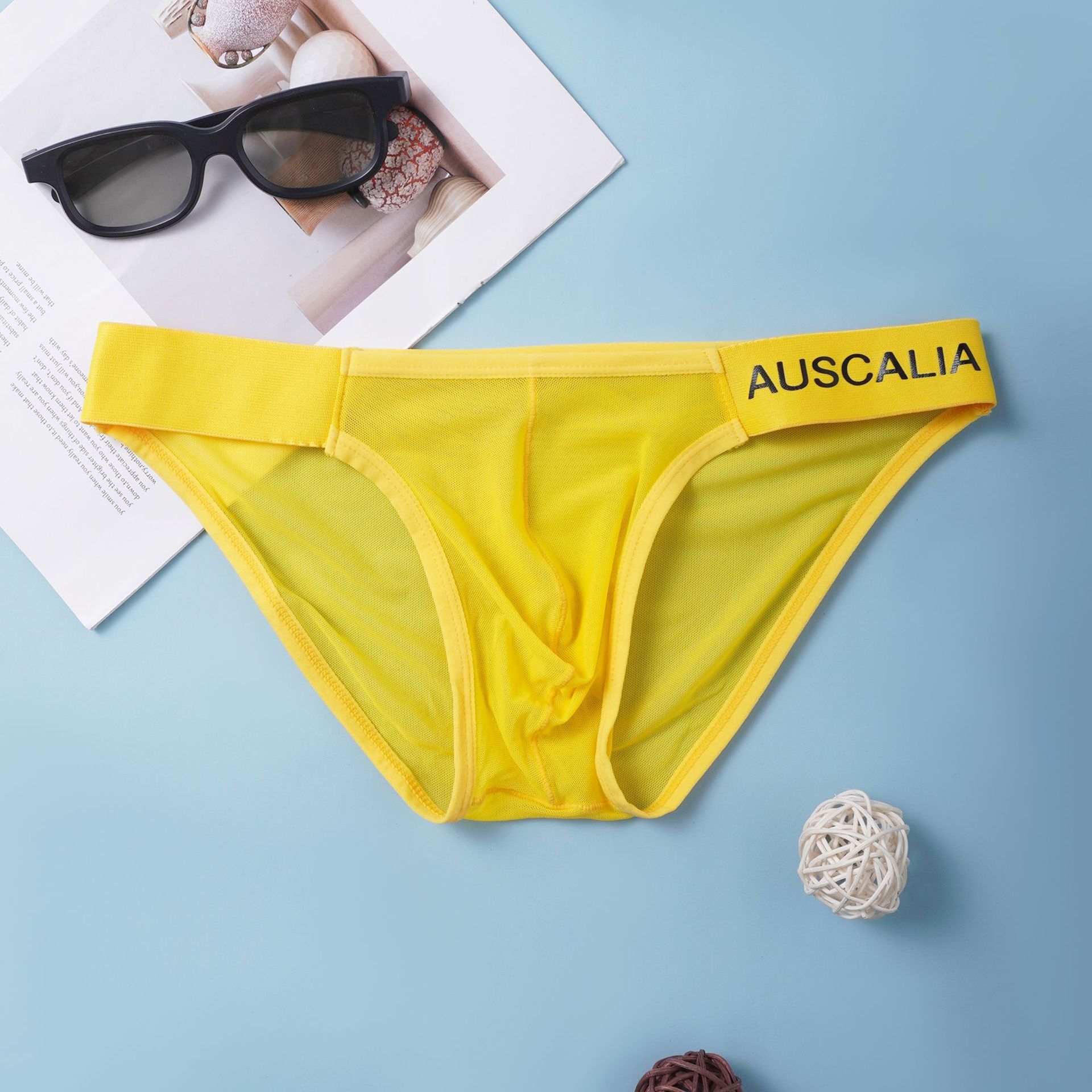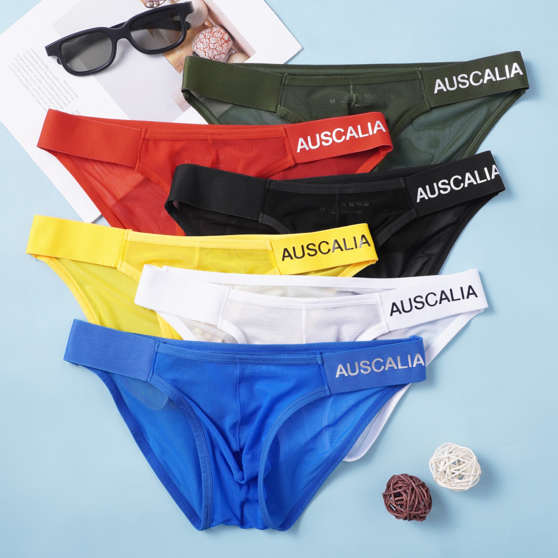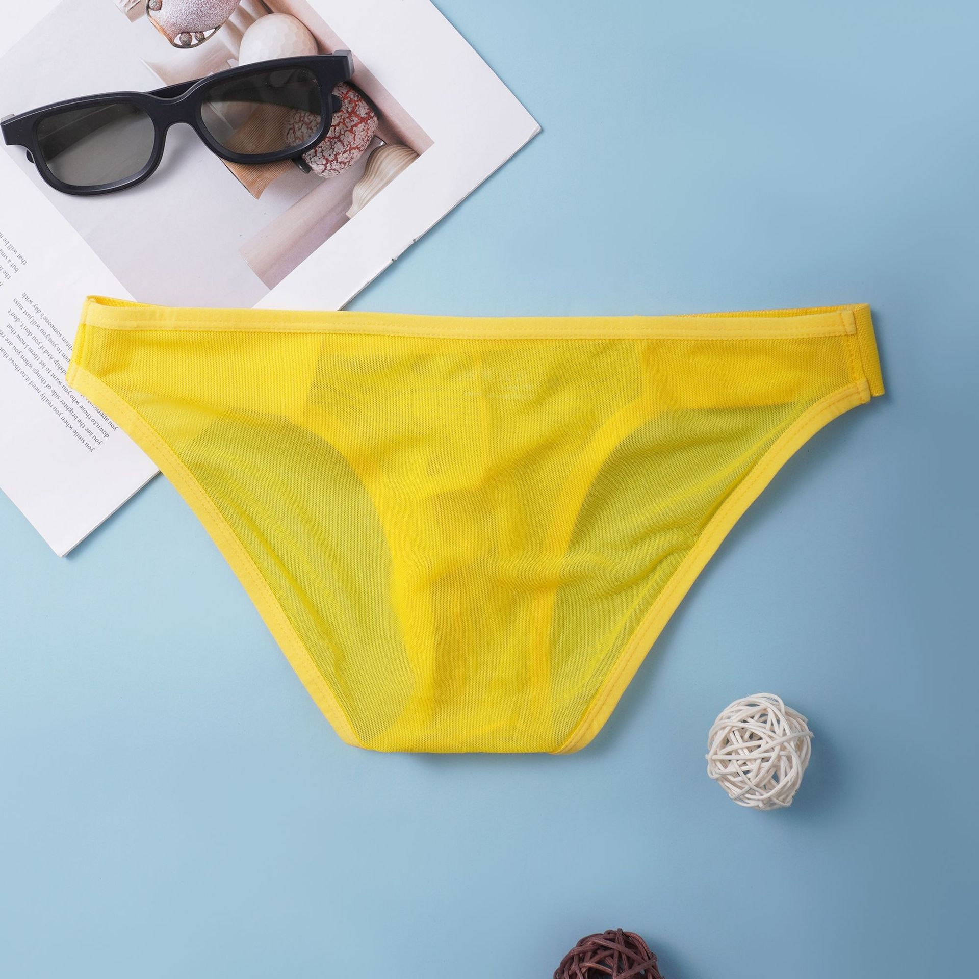남성용 브리프 낮은 허리 섹시한 메쉬 솔리드 컬러 아이스 실크 얇은 통기성 U 볼록 쿨 하이 포크 브리프