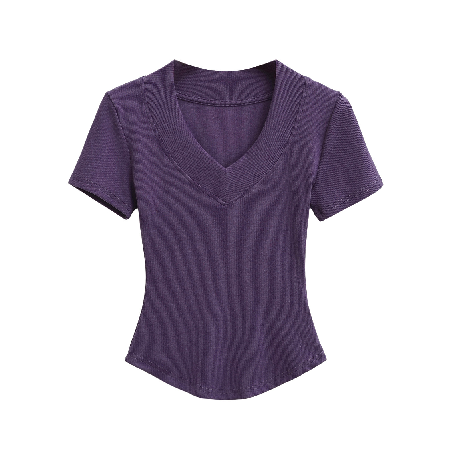 683-스파이스 걸스 순수한 욕망 V 넥 짧은 소매 패션 티셔츠 여성 2025 새로운 유럽과 미국 스타일 섹시한 슬림베이스 재킷스토어 가기