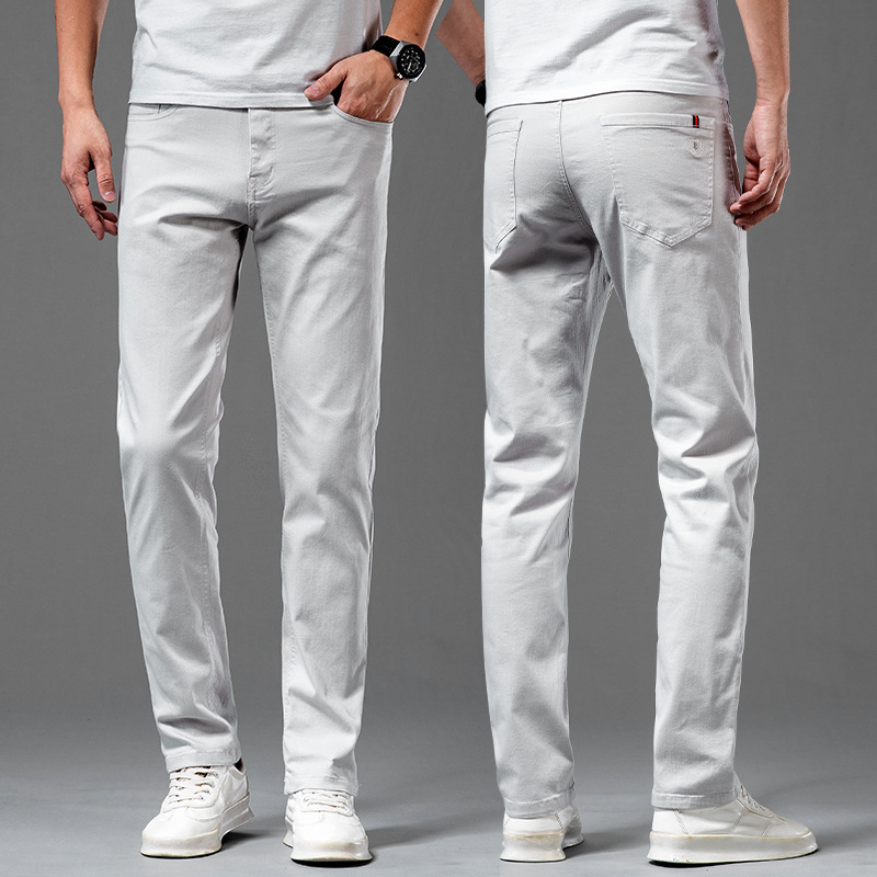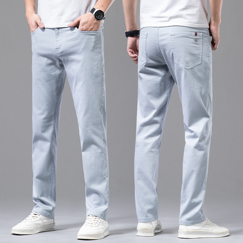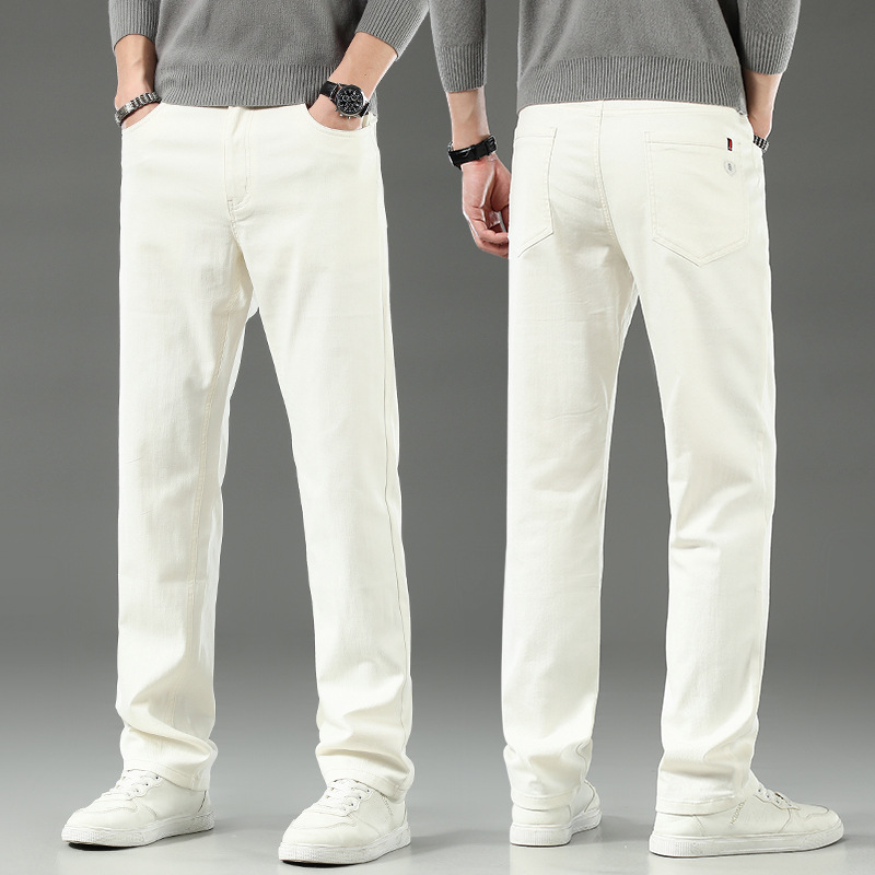 가을 뉴 아이보리 청바지 남성 2024 새로운 스트레이트 느슨한 중년 하이 허리 비즈니스 캐주얼 남성 바지스토어 가기