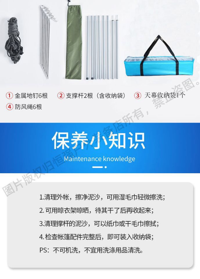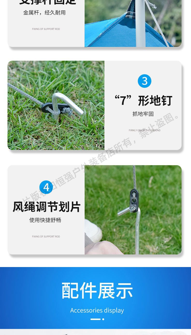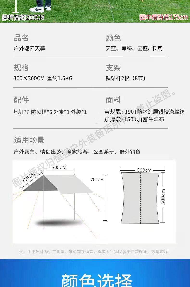 캐노피 야외 캠핑 두꺼운 해변 낚시 은색 셰딩 비 및 태양 보호 다인용 휴대용 차양 Weidong스토어 가기