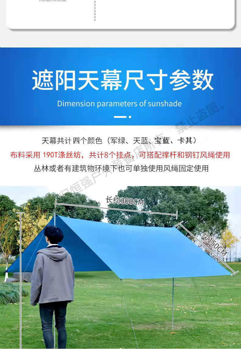 캐노피 야외 캠핑 두꺼운 해변 낚시 은색 셰딩 비 및 태양 보호 다인용 휴대용 차양 Weidong