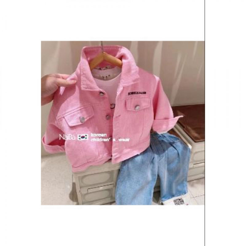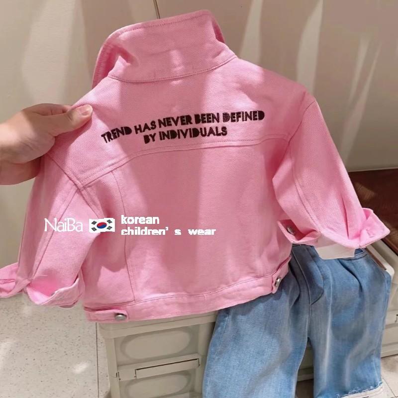 한국 소년 소녀 코트 봄 2025 핑크 옷깃 어린이 면화 문자 자수 어린이 외국 스타일스토어 가기