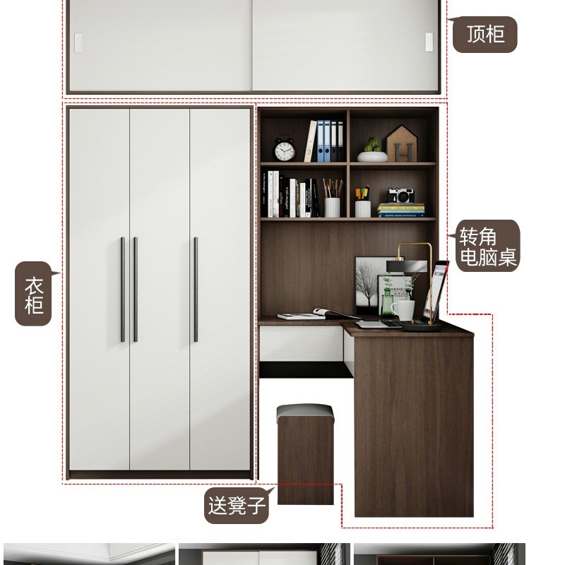 컴퓨터 데스크톱 테이블 원피스 코너 데스크 옷장 조합 간단한 가정 침실 학생 연구 테이블