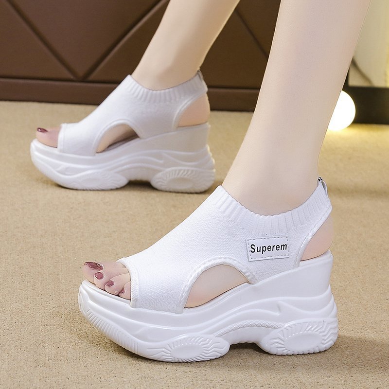 대외 무역 국경 폭발 통기성 비치 신발 한국 스타일 플랫폼 하단 단색 세트 피트 패션 여성용 니트 플라이 짠 샌들