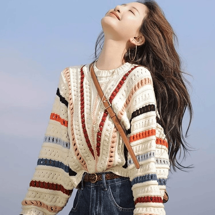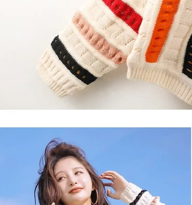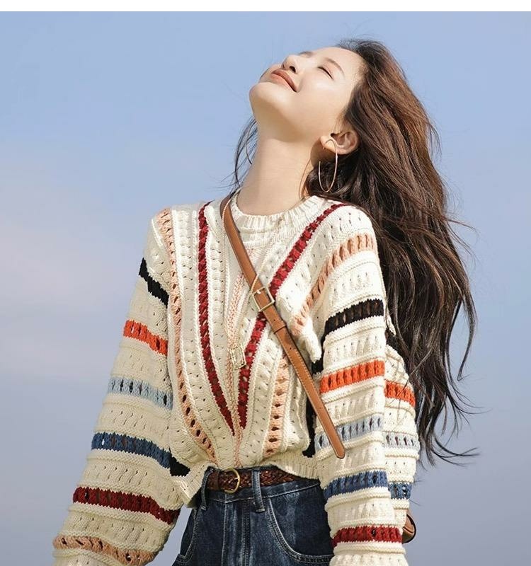 JINQ 가리 착용 패션 디자인 레인보우 스트라이프 스웨터 봄 가을 겨울 게으른 바람 외부 착용 대비 컬러 니트스토어 가기