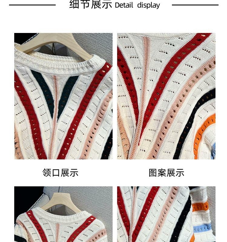 JINQ 가리 착용 패션 디자인 레인보우 스트라이프 스웨터 봄 가을 겨울 게으른 바람 외부 착용 대비 컬러 니트