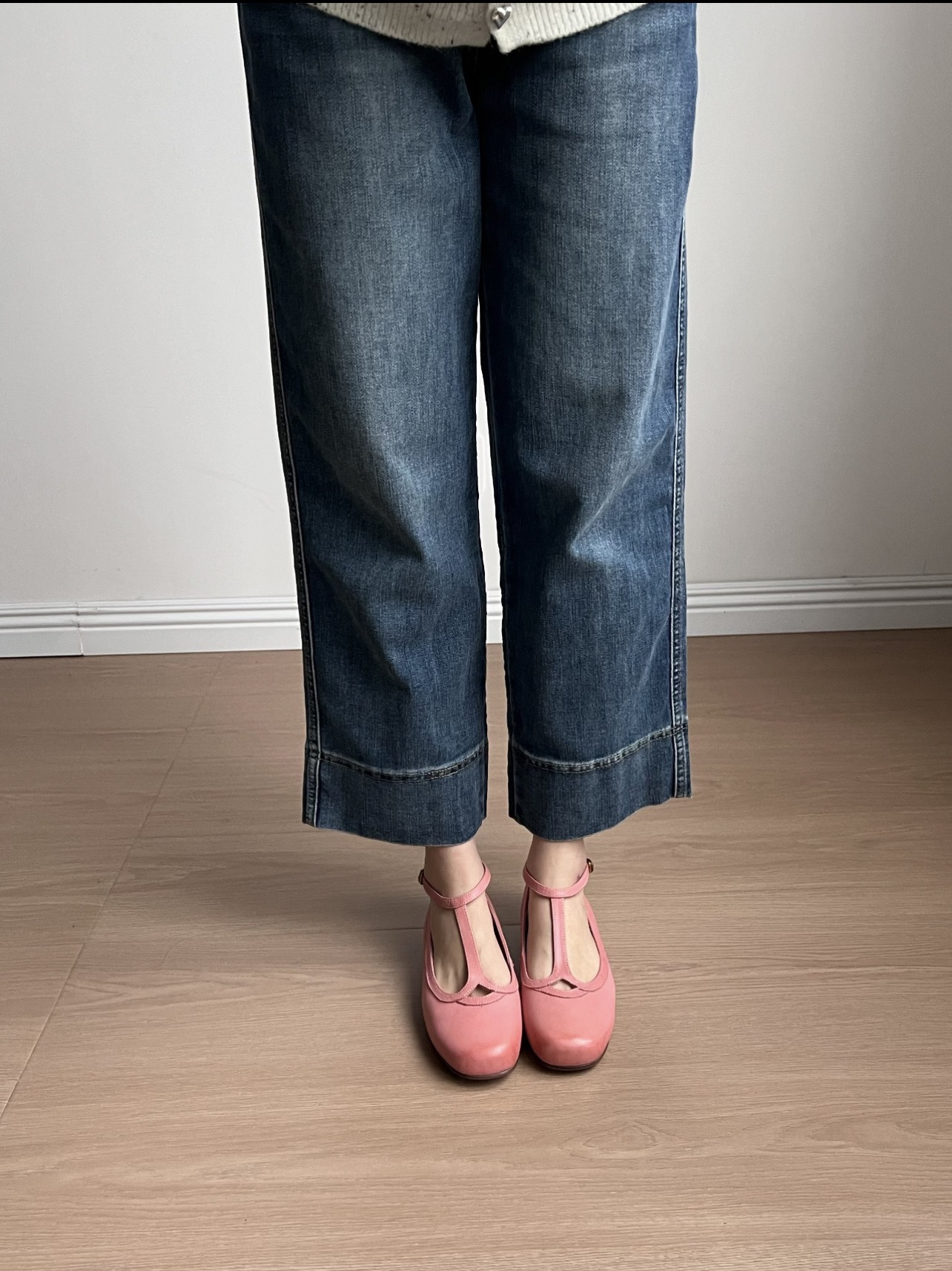 양가죽 영국 스타일 소녀의 캐주얼 올 매치 레트로 라운드 발가락 플랫 신발 버클스토어 가기