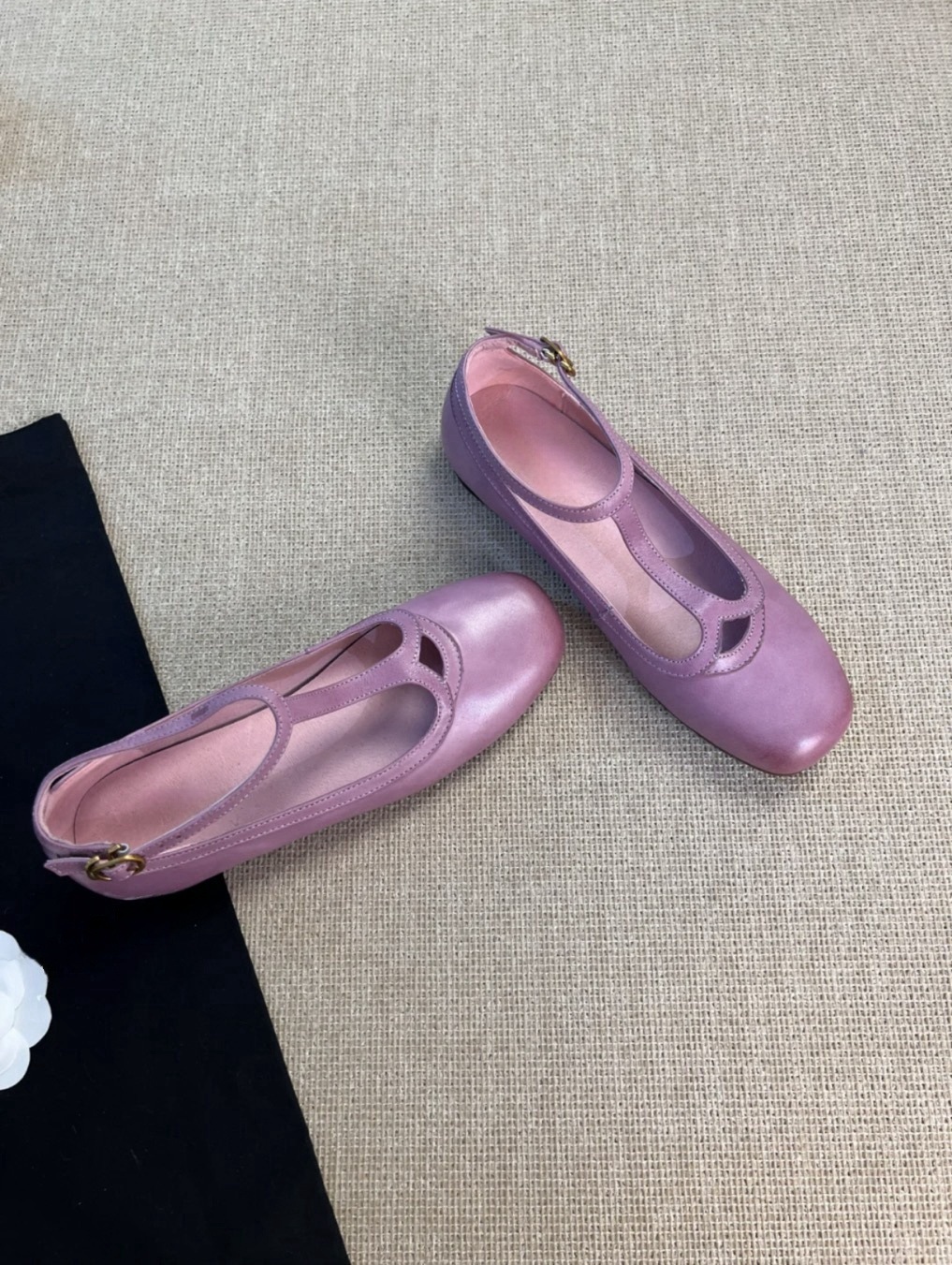 양가죽 영국 스타일 소녀의 캐주얼 올 매치 레트로 라운드 발가락 플랫 신발 버클