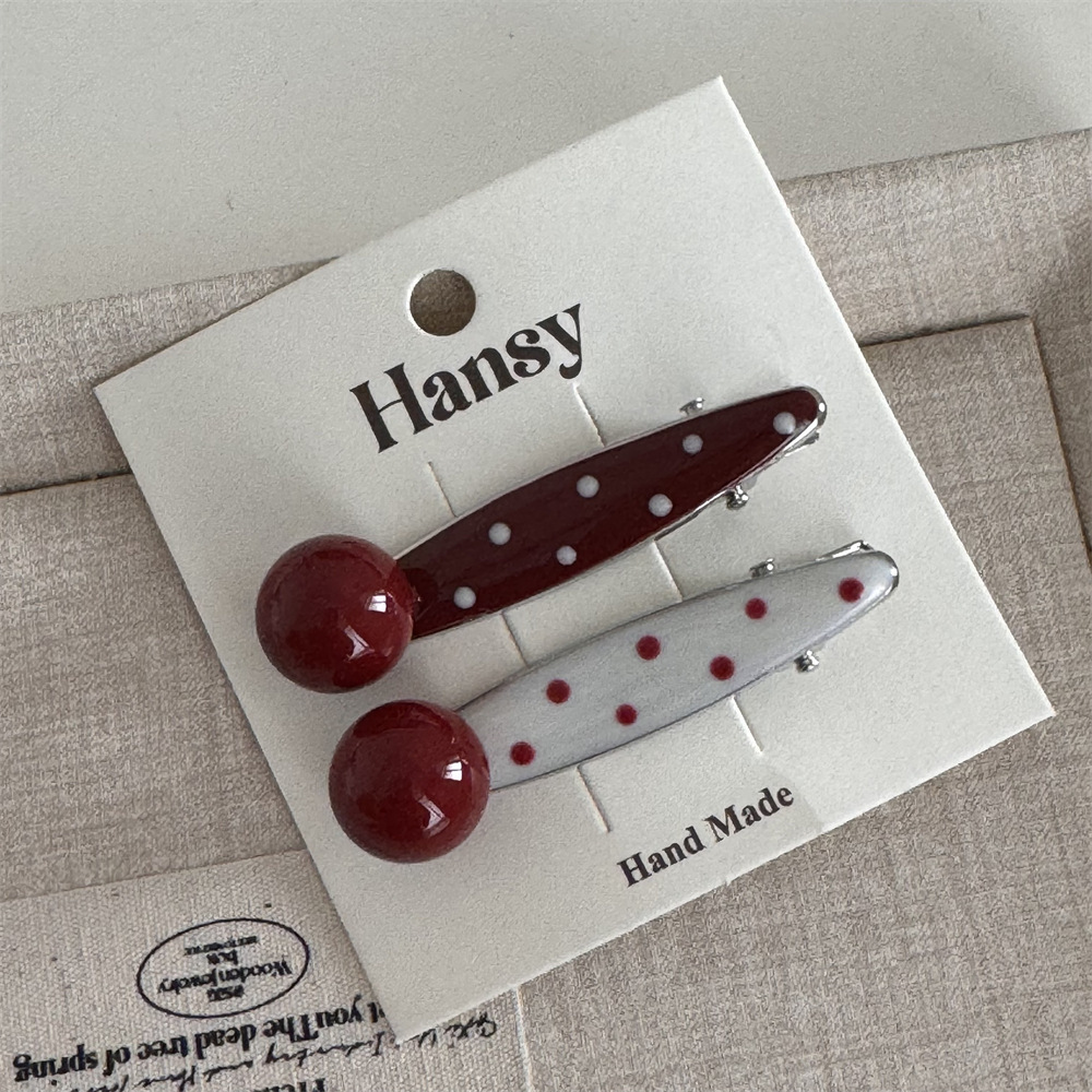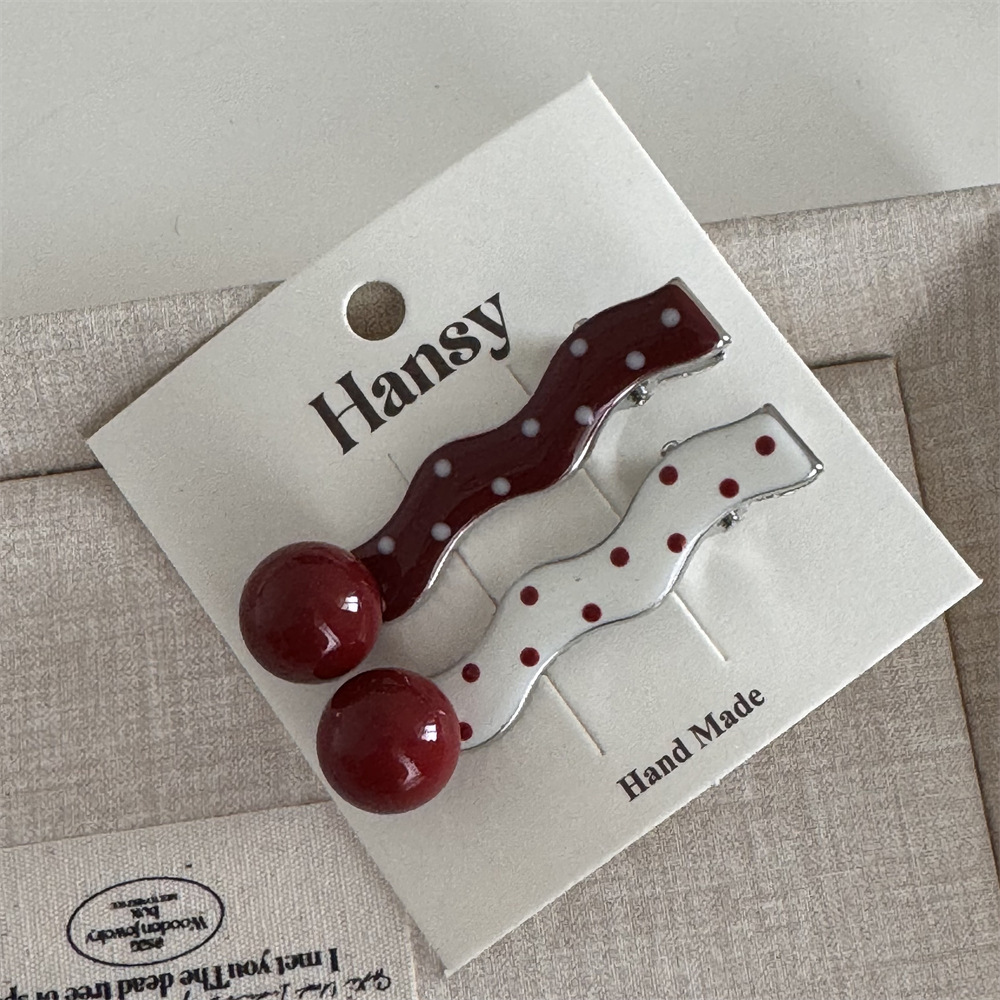• 빨간색과 흰색 물방울 무늬 타원형 머리핀-[2개]