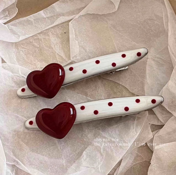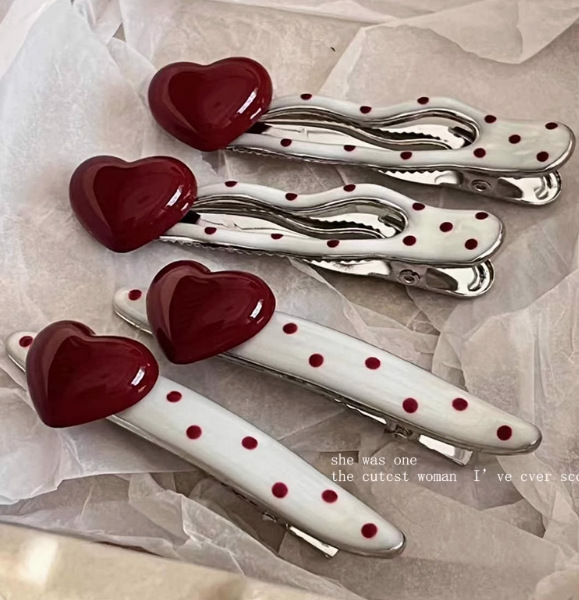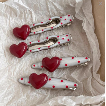 • 레드 하트 도트 버드나무 리프 클립-[2개]++레드 하트 도트 웨이브 클립[2개][고품질]