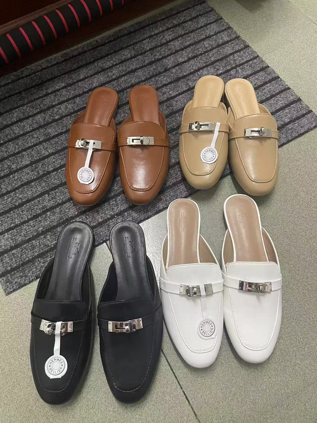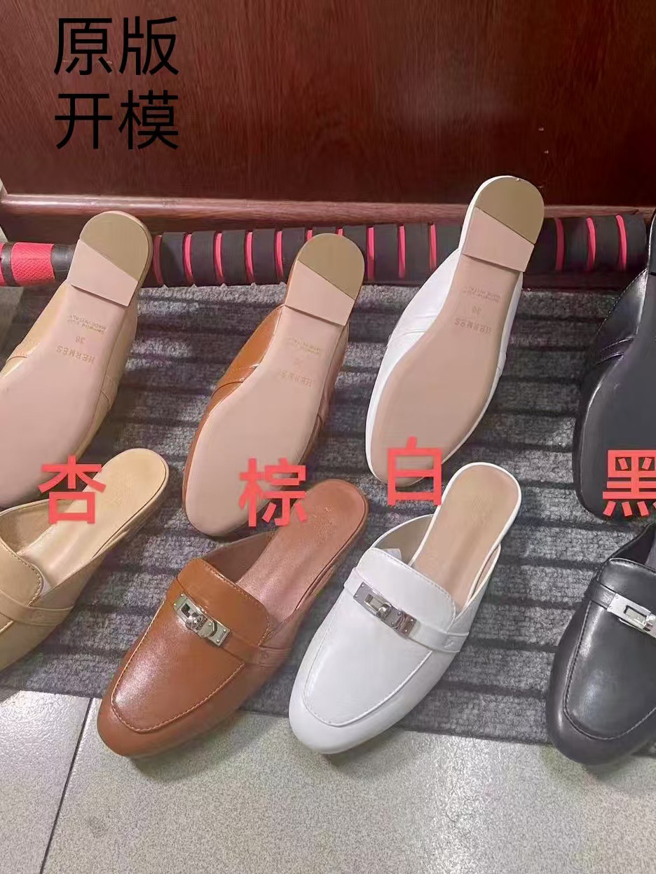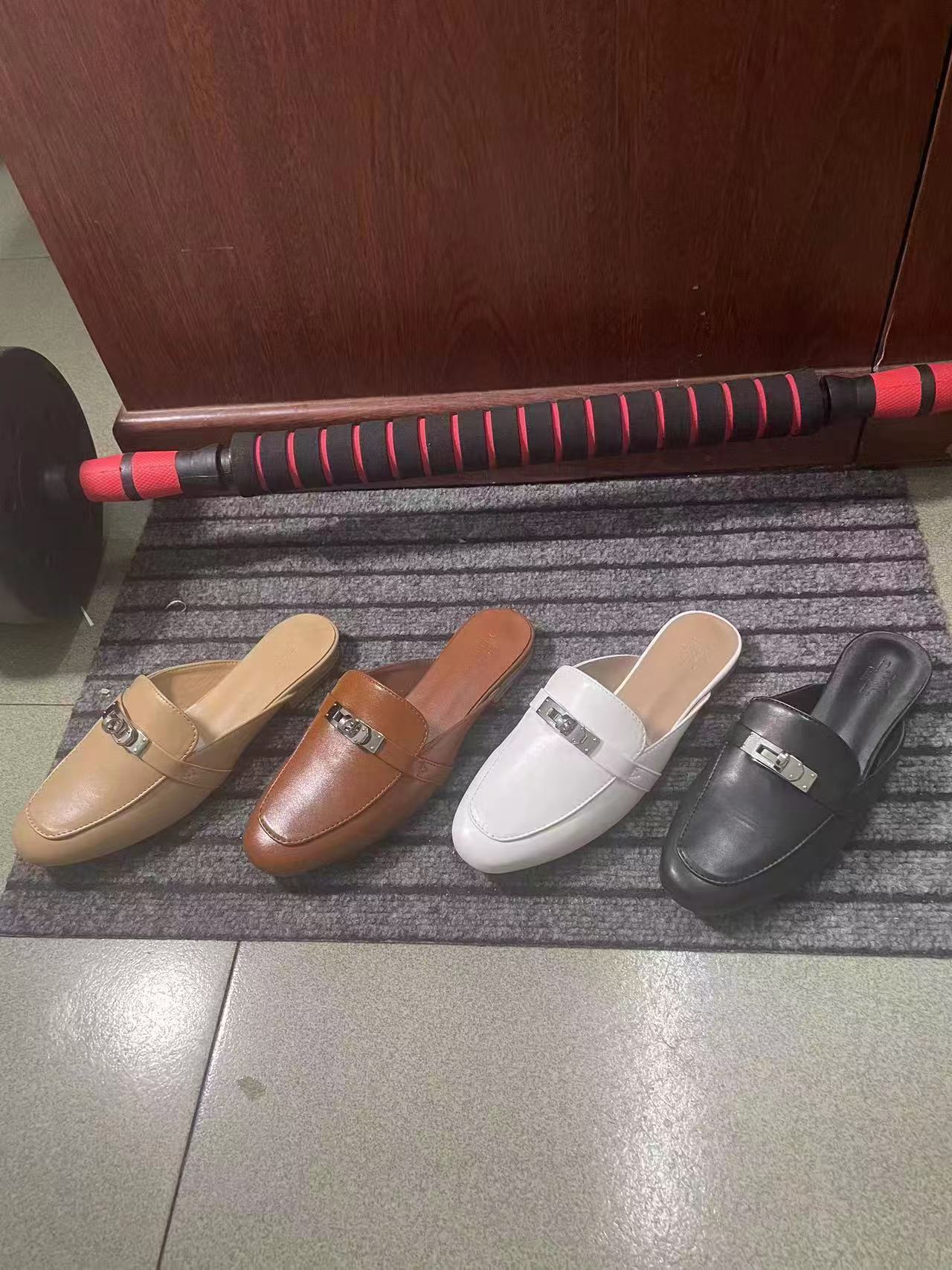 재고 있음! 하이 버전 2025 새로운 Baotou 슬리퍼 여성 플랫 금속 버클 H 가족 게으른 슬립 온 하프 슬리퍼스토어 가기