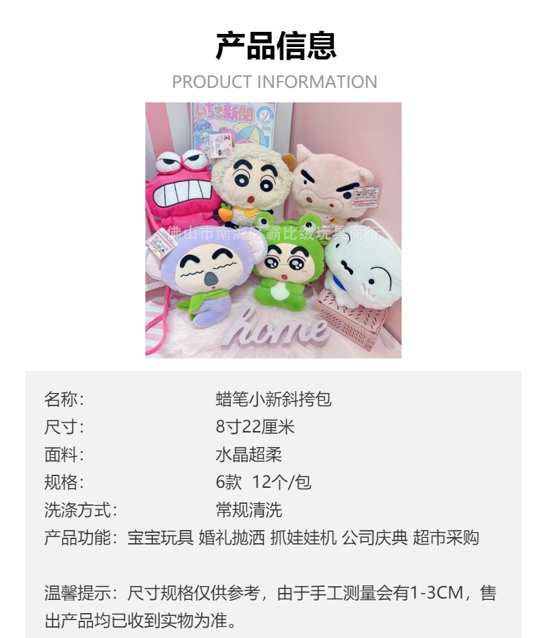 Crossdresser Crayon Shin-chan Crossbody Bag Doll 22cm 귀여운 인형 뽑기 기계 인형 도매 플러시 장난감 Dropshipping스토어 가기
