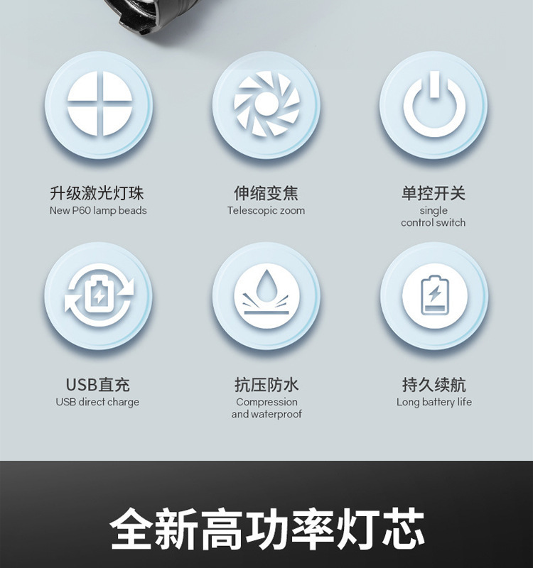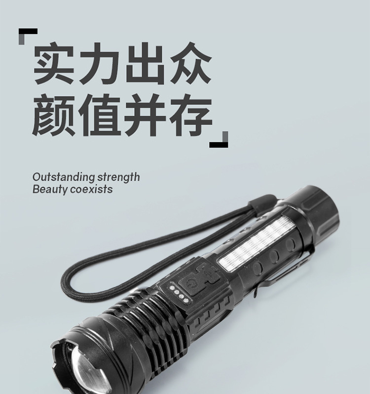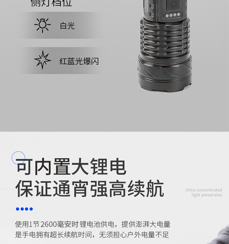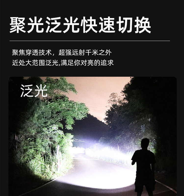 국경 간 야외 손전등, 강한 빛, 매우 긴 스포트라이트, 속 작업 조명, 다기능, 매우 긴 배터리 수명, 충전식 모델