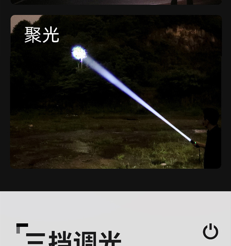 국경 간 야외 손전등, 강한 빛, 매우 긴 스포트라이트, 속 작업 조명, 다기능, 매우 긴 배터리 수명, 충전식 모델스토어 가기