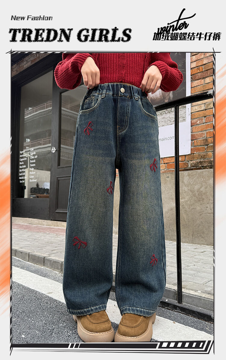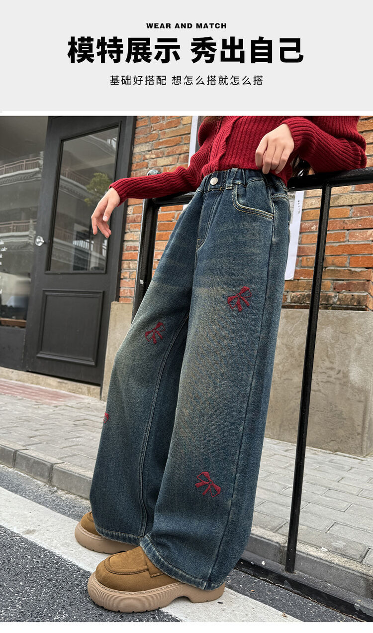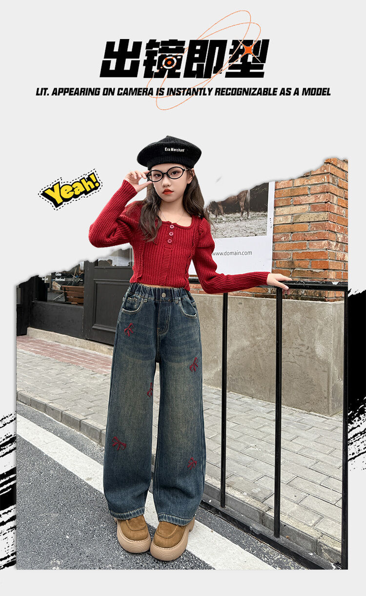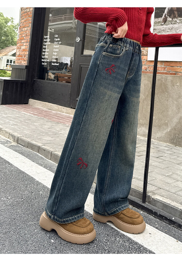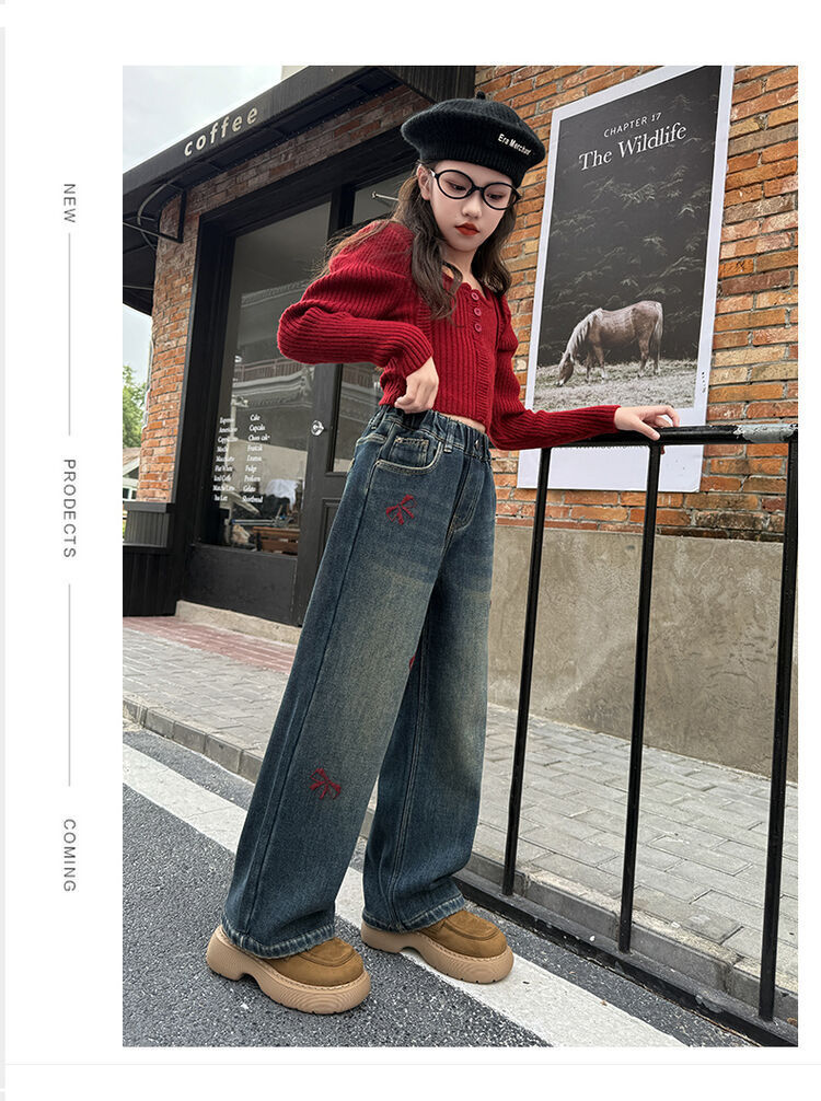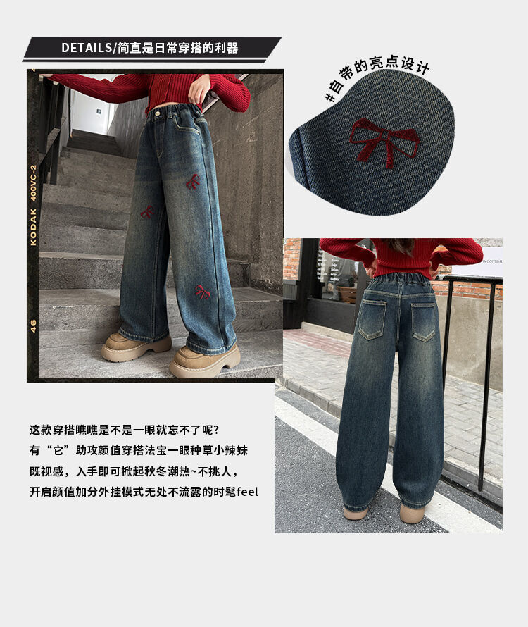 봄과 가을 새로운 스타일 여아 청바지 스트레이트 팬츠 와이드 팬츠 중대형 아동 루즈한 데님 스트레이트 팬츠 여아 봄과 가을 의류스토어 가기