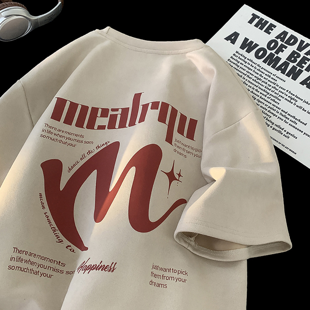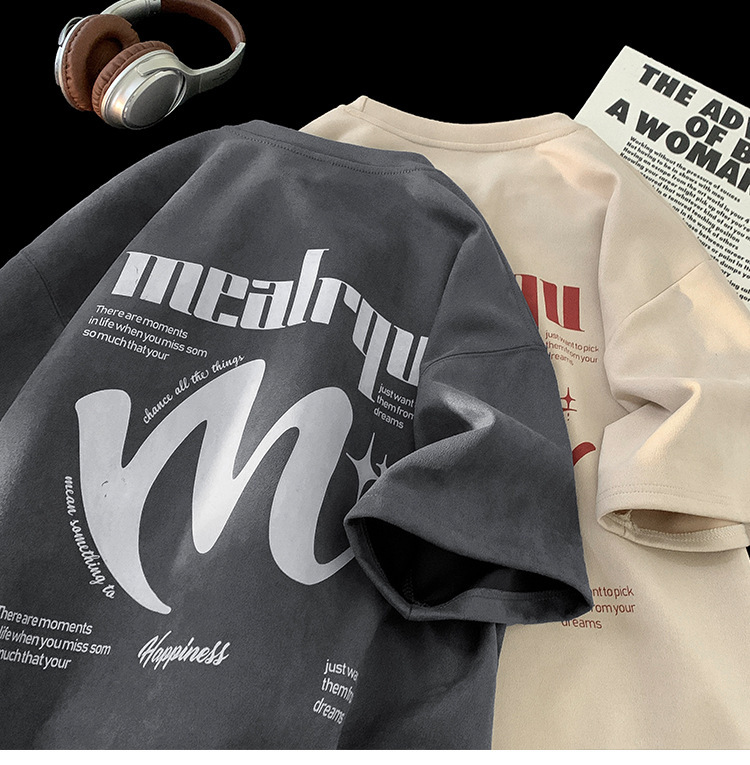 아메리칸 스타일 무거운 반팔 티셔츠 남자 2025 년 여름 새로운 빈티지 편지 인쇄 십대 크루 넥 탑 옷