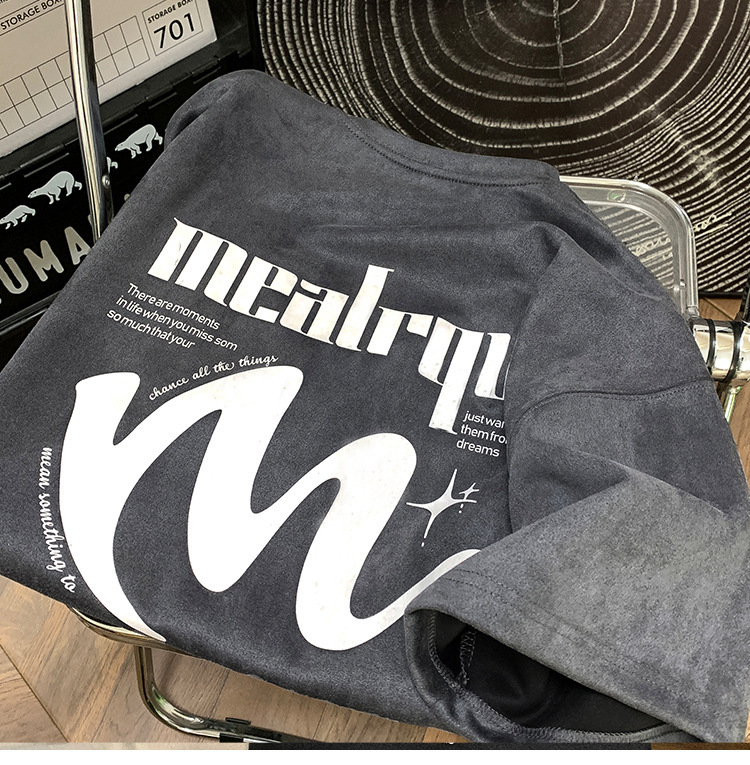 아메리칸 스타일 무거운 반팔 티셔츠 남자 2025 년 여름 새로운 빈티지 편지 인쇄 십대 크루 넥 탑 옷스토어 가기