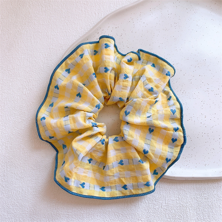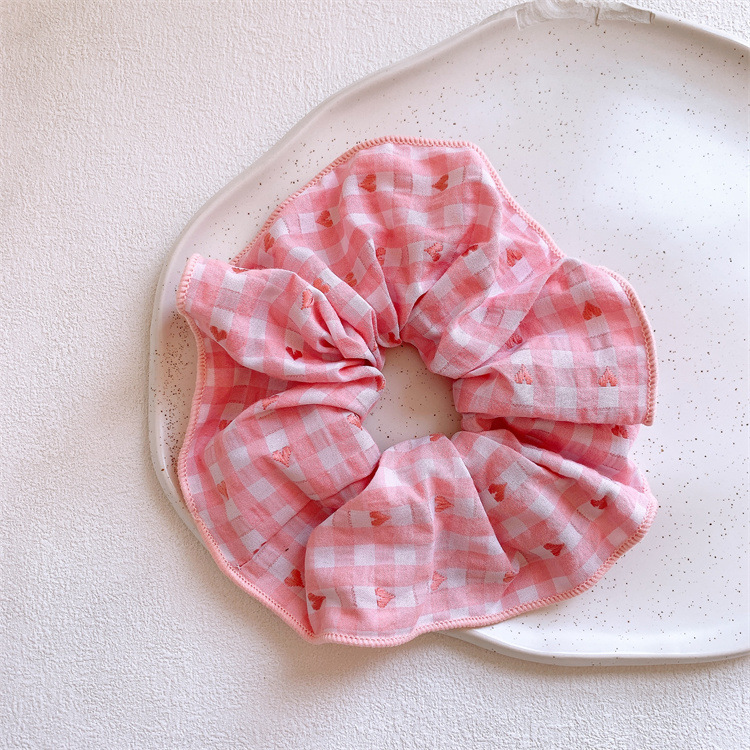 새로운 스타일 패브릭 러브 플레이드 대형 Intestine 헤어 루프 볼 헤어 로프 스위트 소녀의 Paytail 고무 Tendon 헤어 로프 헤어 액세서리스토어 가기