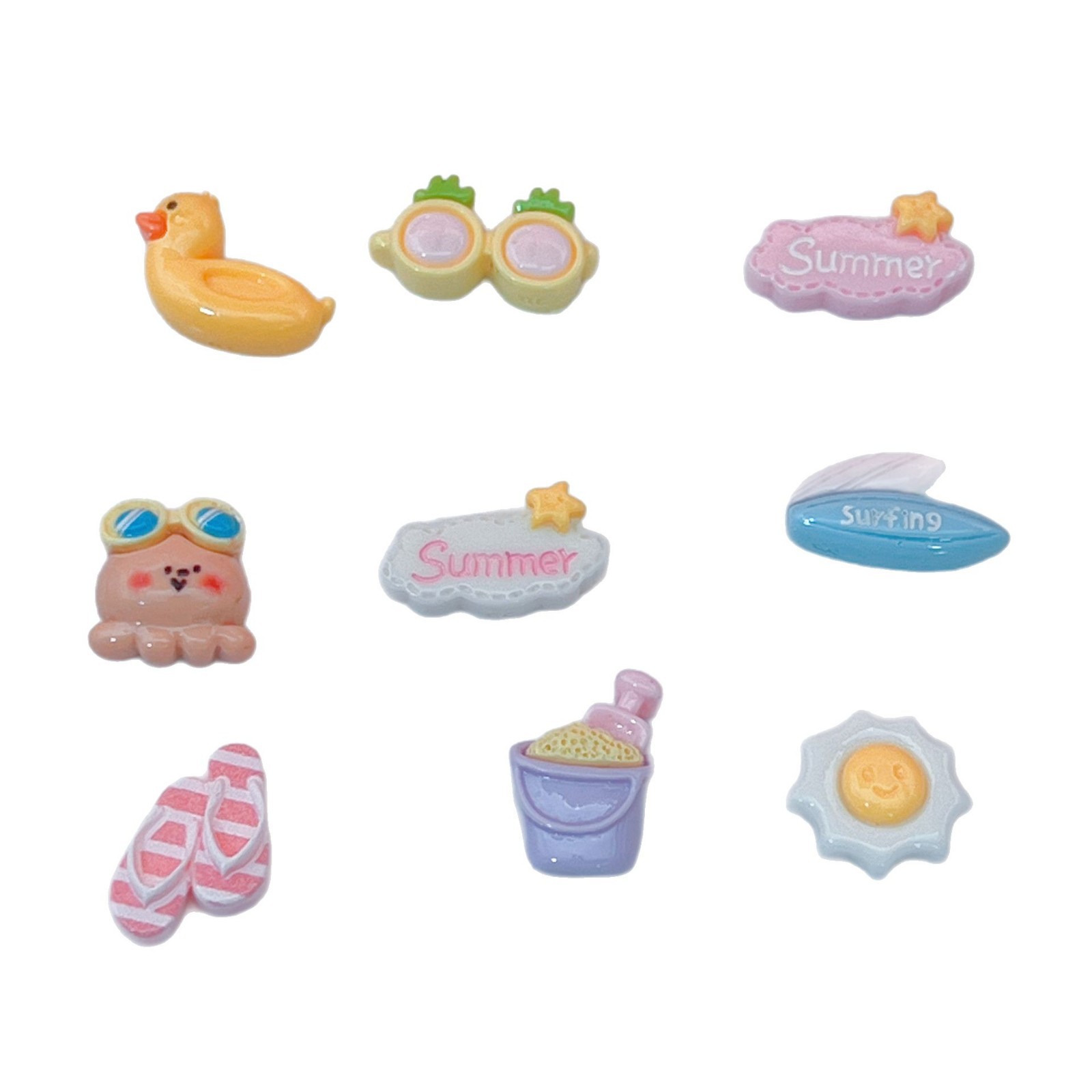 미니 여름 해변 모래 파기 튜브, 수영 반지, 슬리퍼, 태양 서핑, 매니큐어, 머리핀, DIY 수지 액세서리