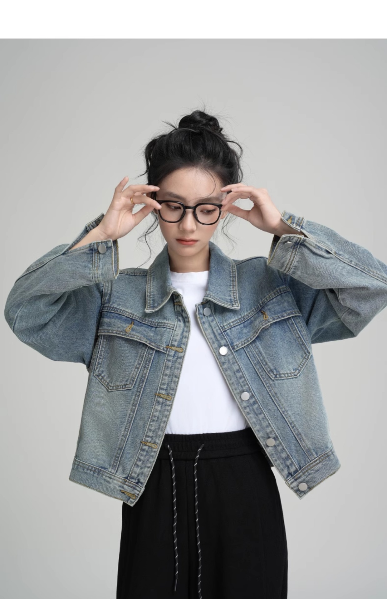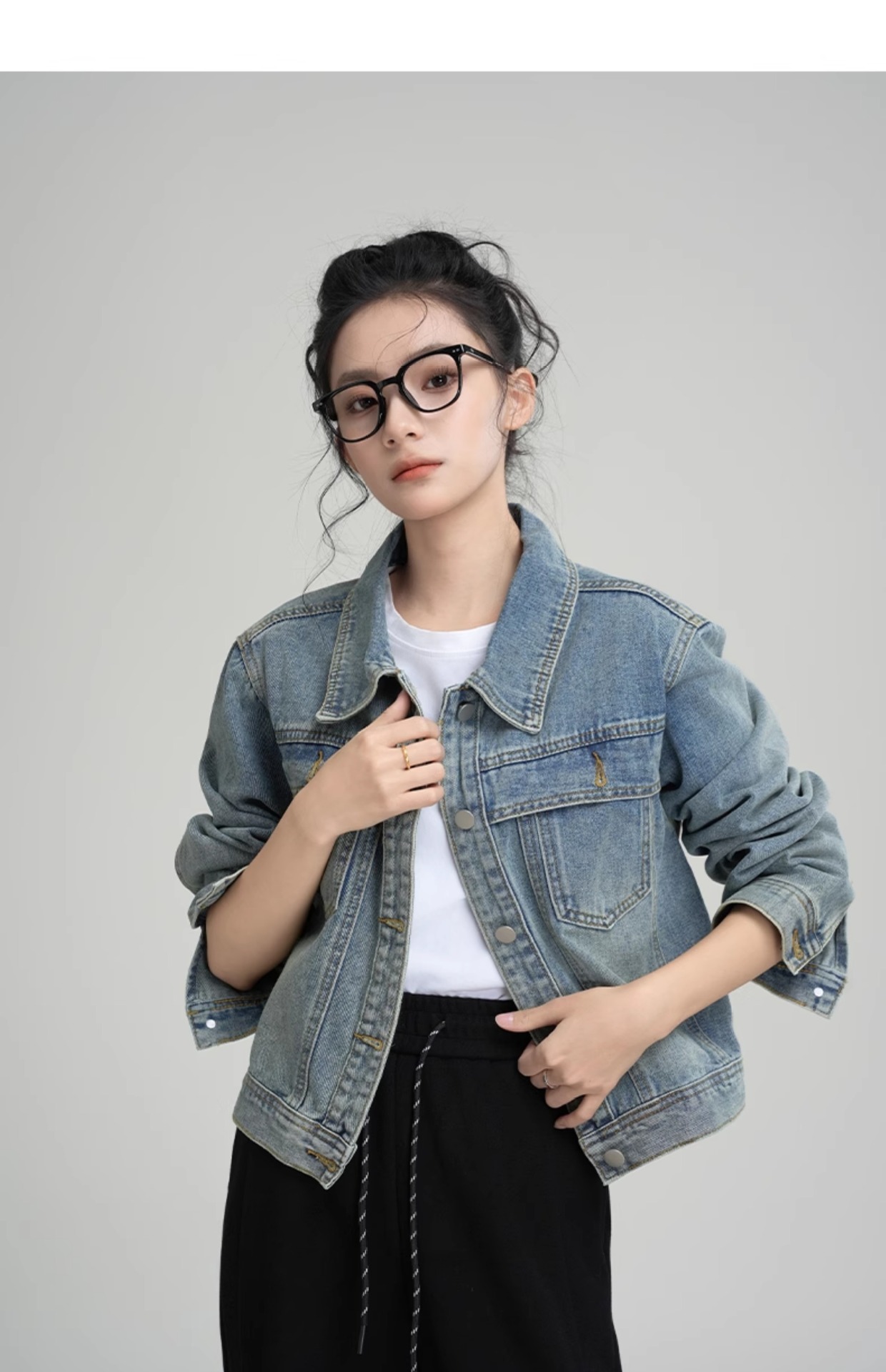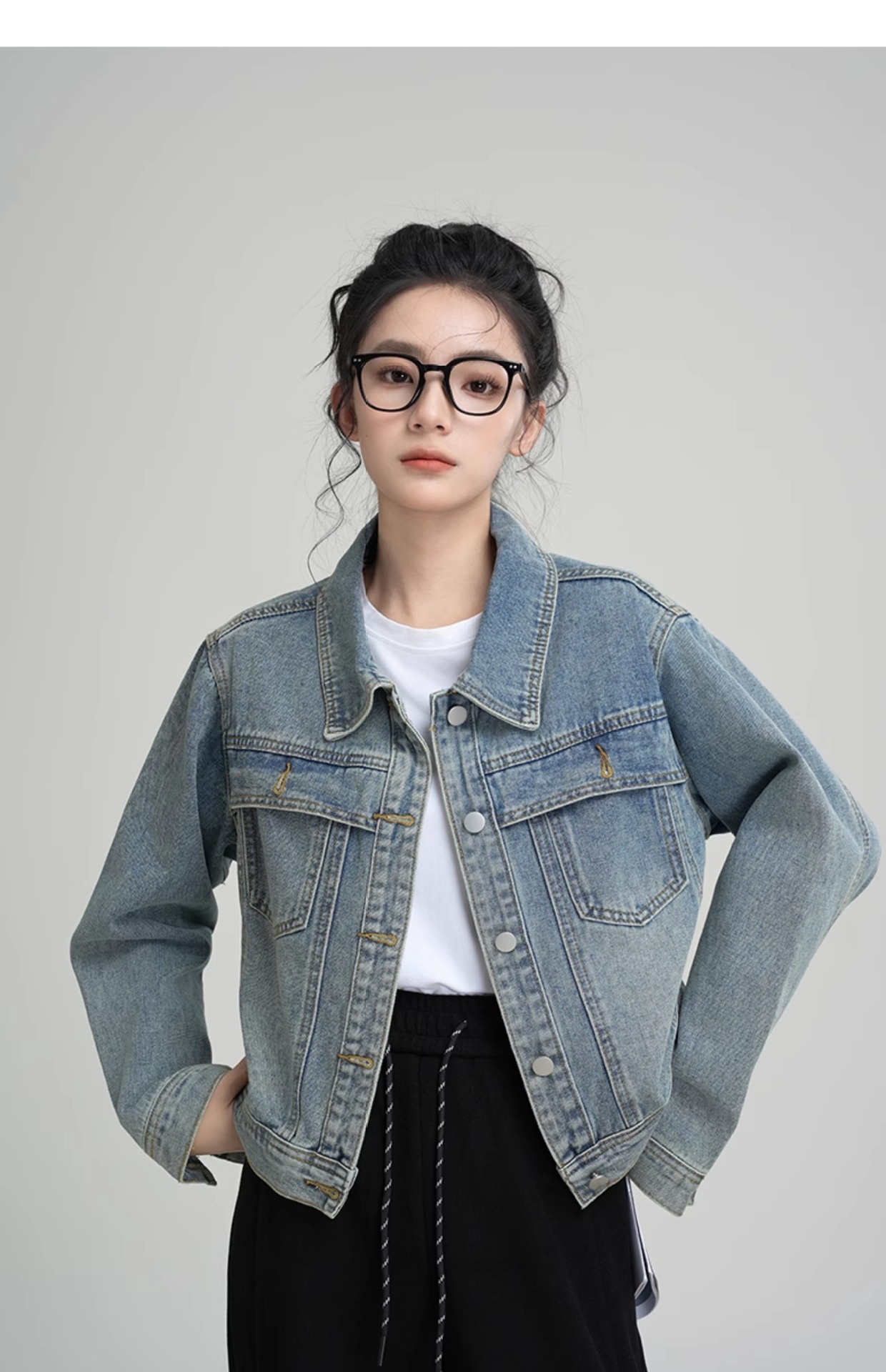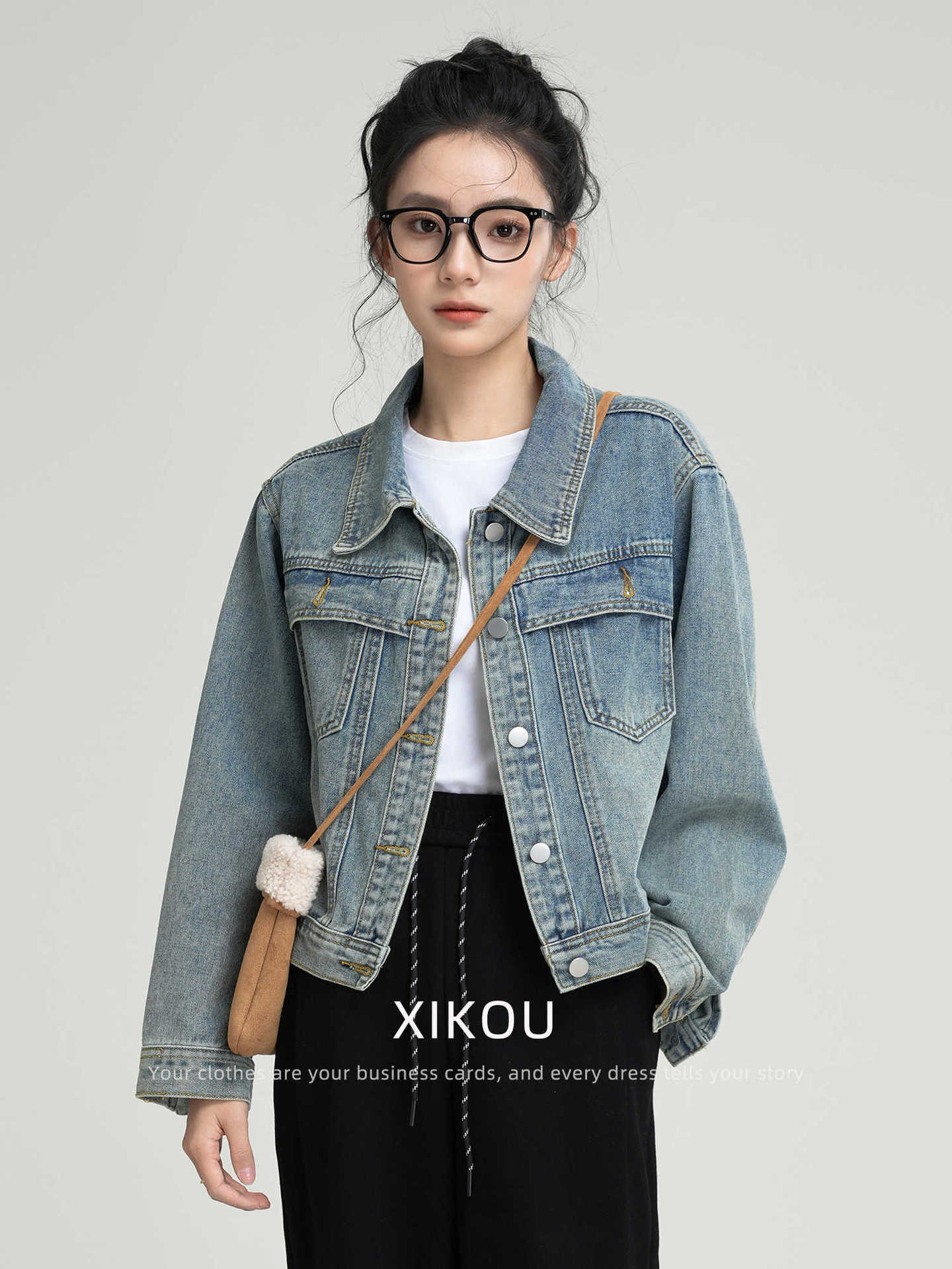 데님 코트 여자 2025 년 봄과 가을 새로운 씻은 미국 스타일 레트로 캐주얼 올 매치 쇼트 재킷 탑스토어 가기