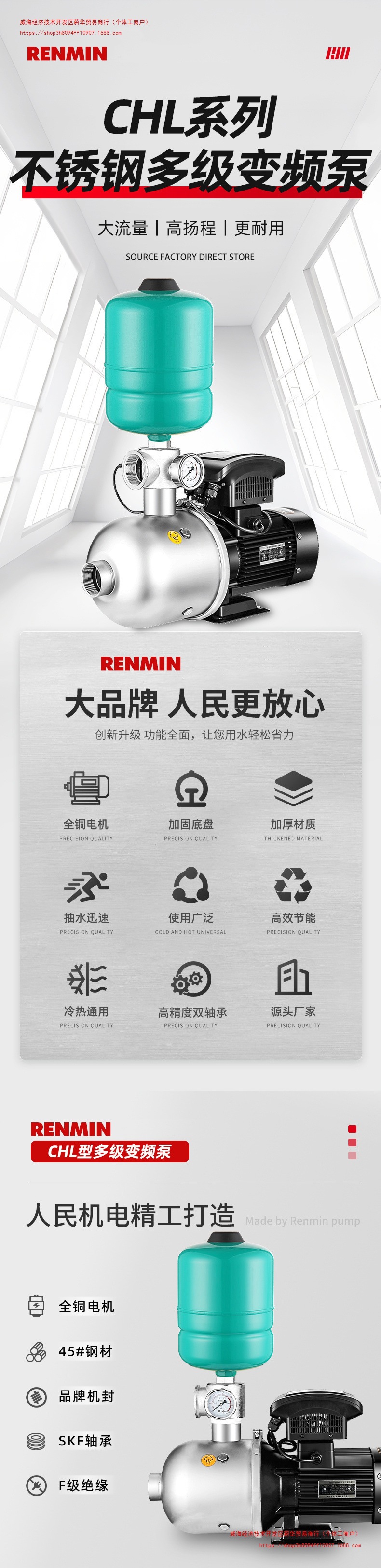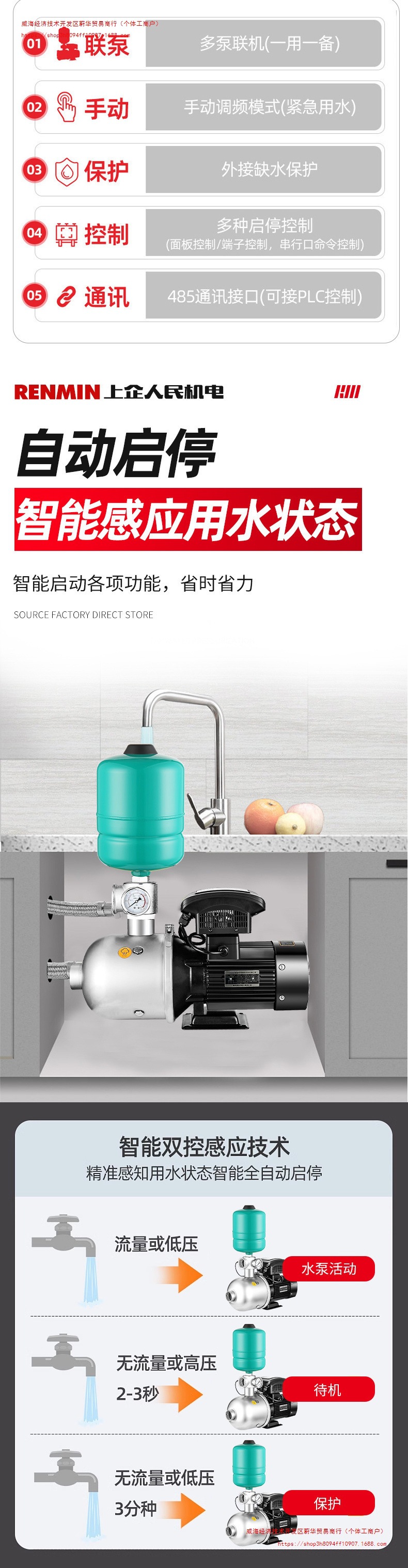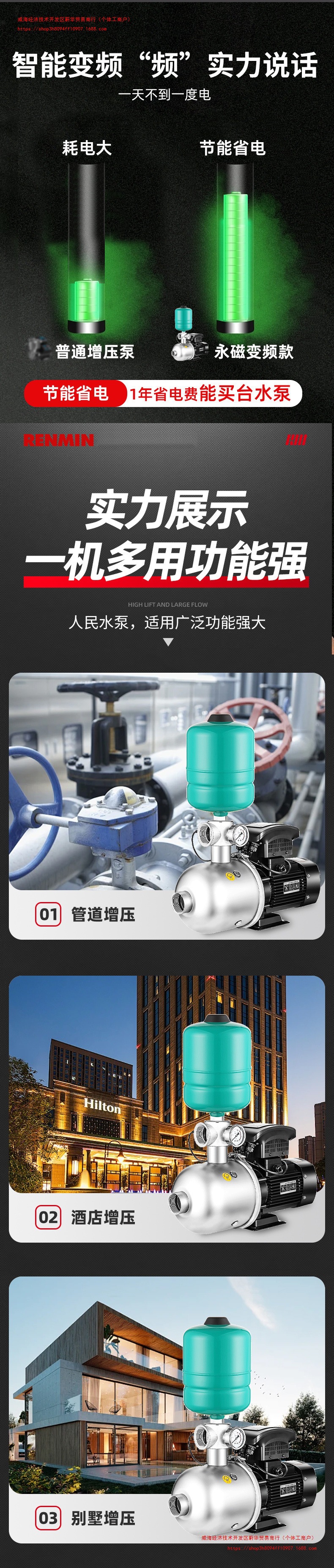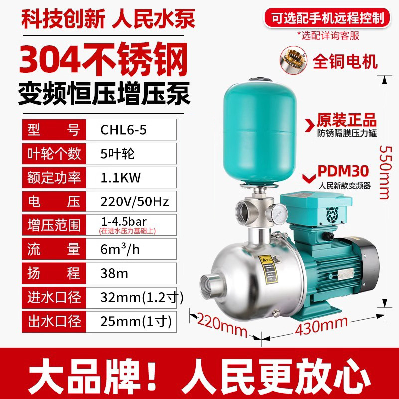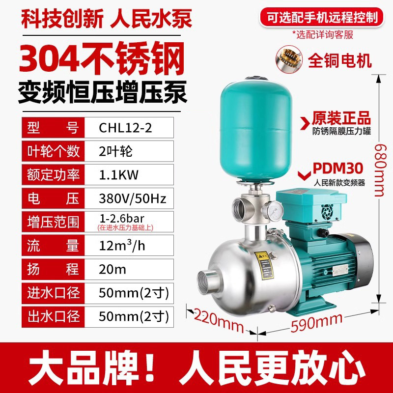 인민 정압 가변 주파수 부스터 펌프 스테인레스 스틸 가정용 수돗물 가압 펌프 고출력 고층 워터 타워 고압 펌프스토어 가기