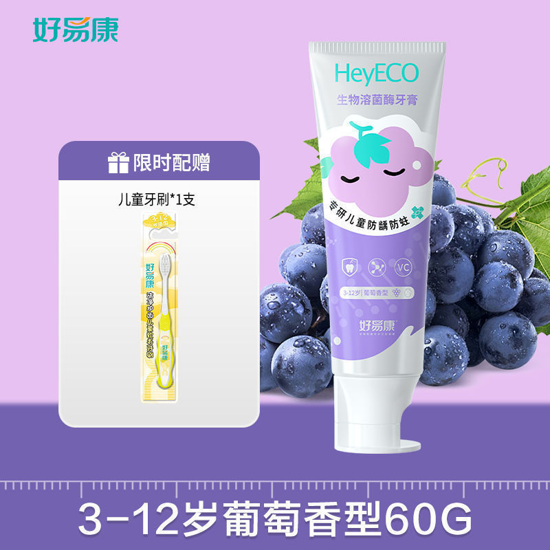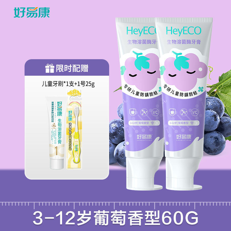 • 3~12세용 치약 [포도맛 60g] - 2팩 [무료 칫솔*1+치약 25g]