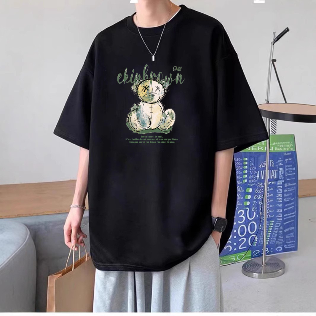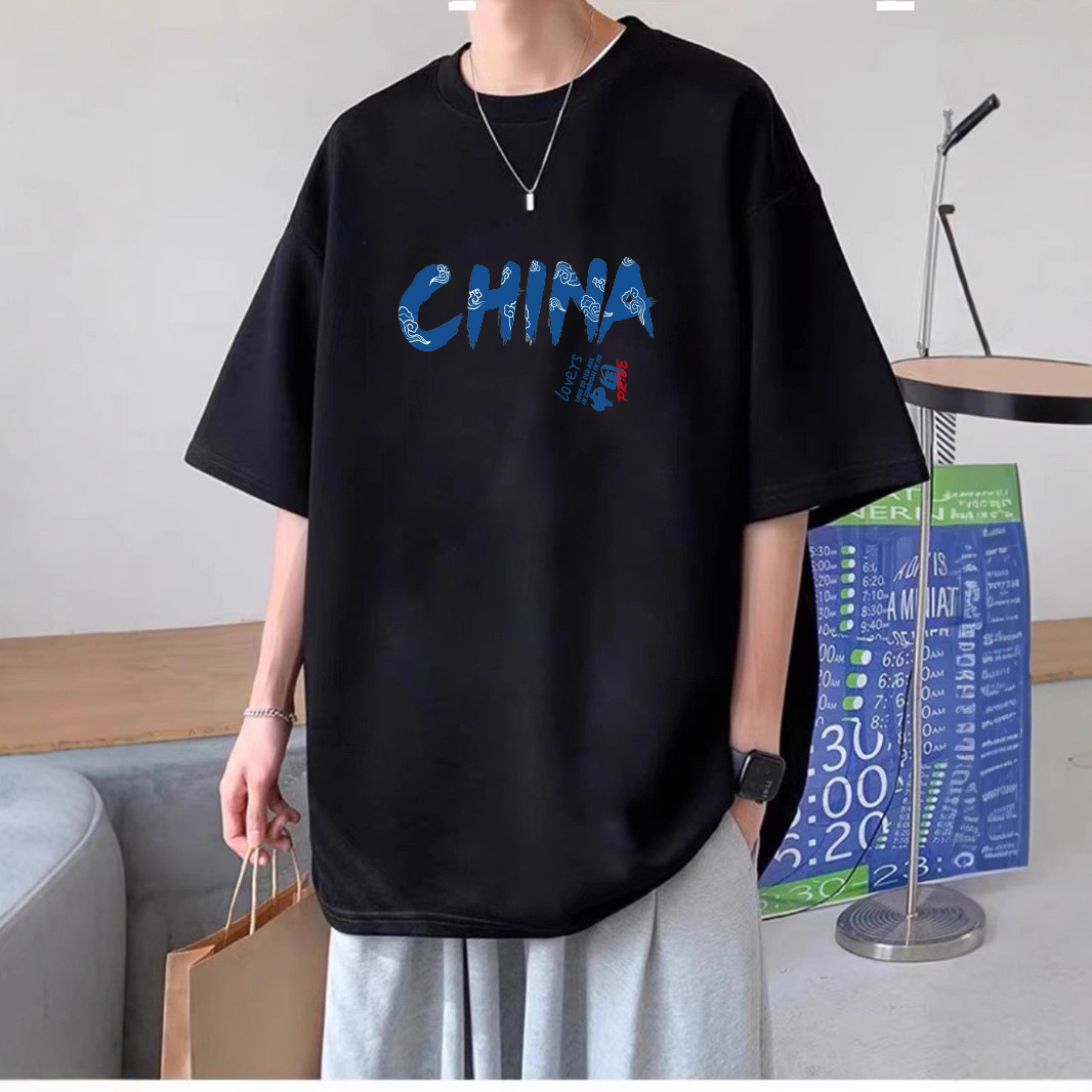 매장 관리자 추천 레트로 패셔너블 브랜드 반팔 티셔츠 남자 올매치 탑 루즈 코튼 패셔너블 프린트 남성용 티셔츠