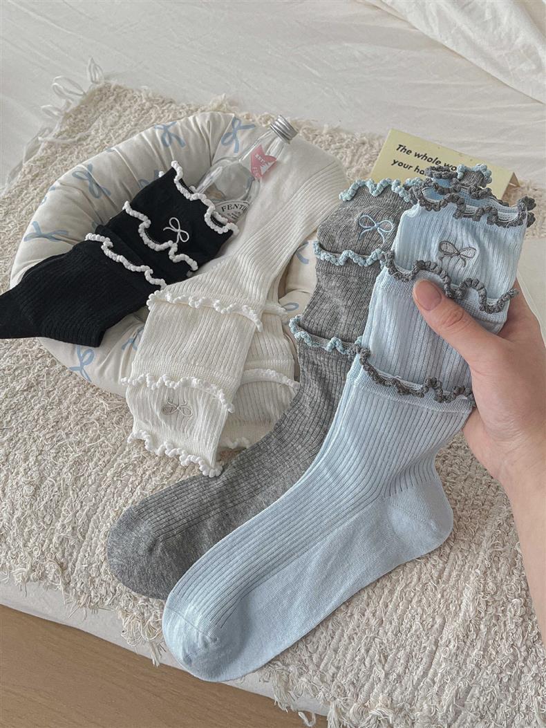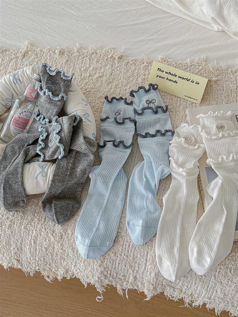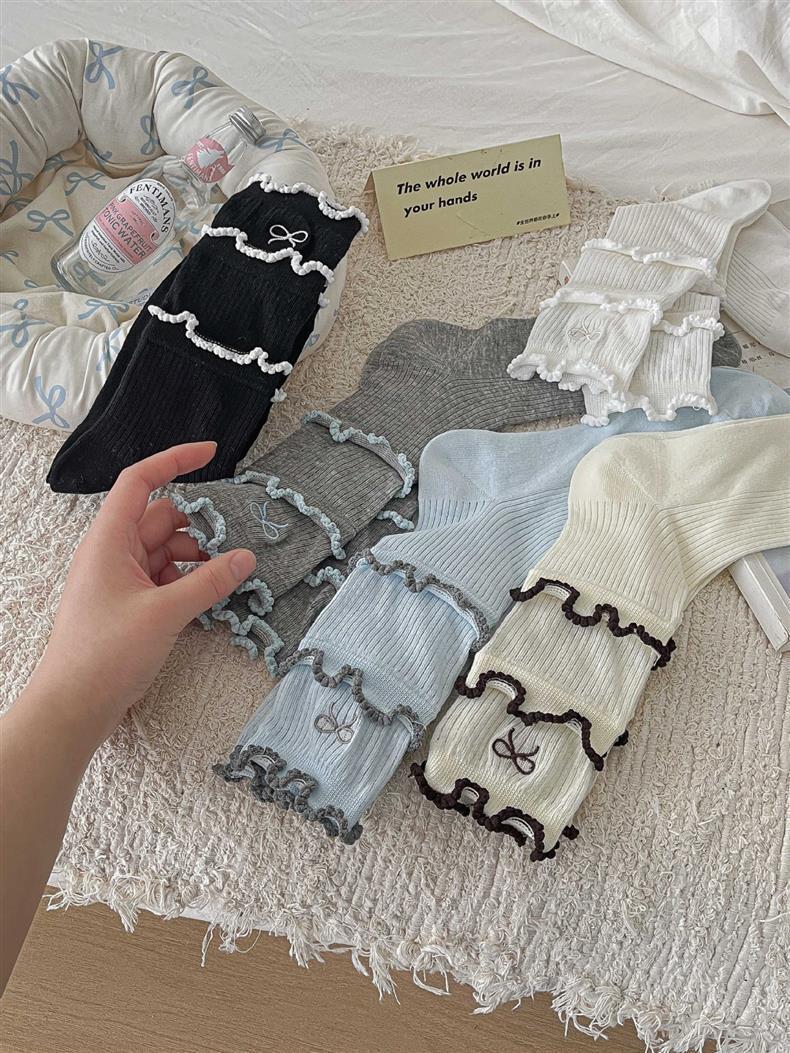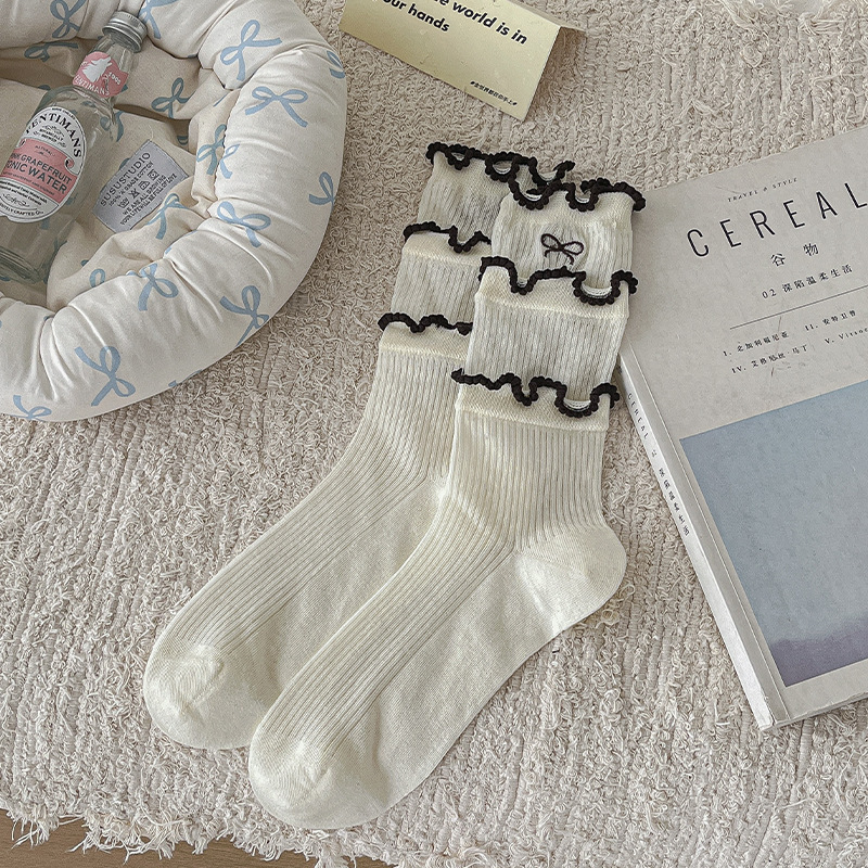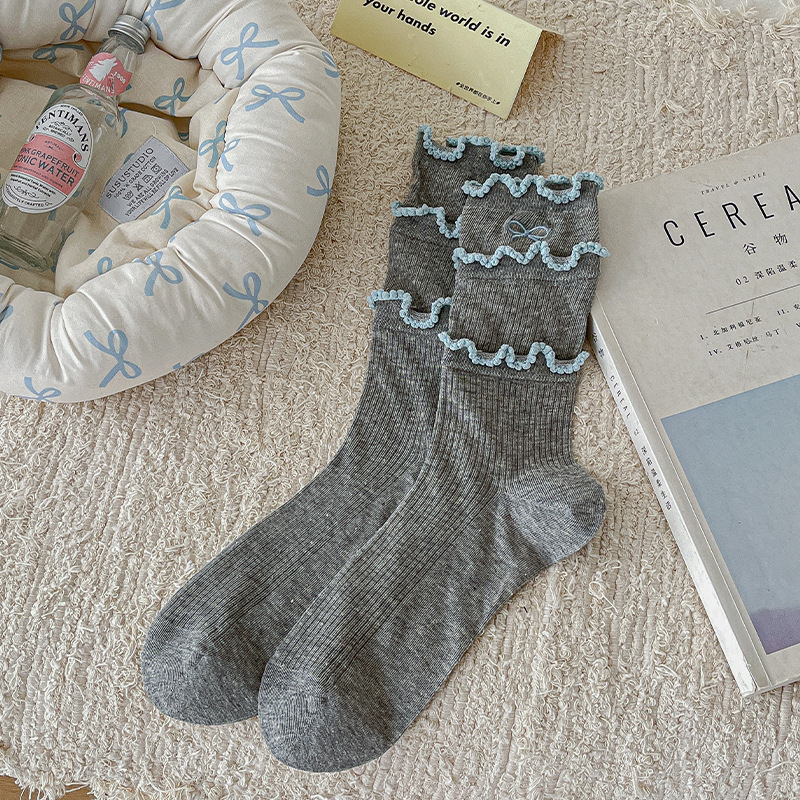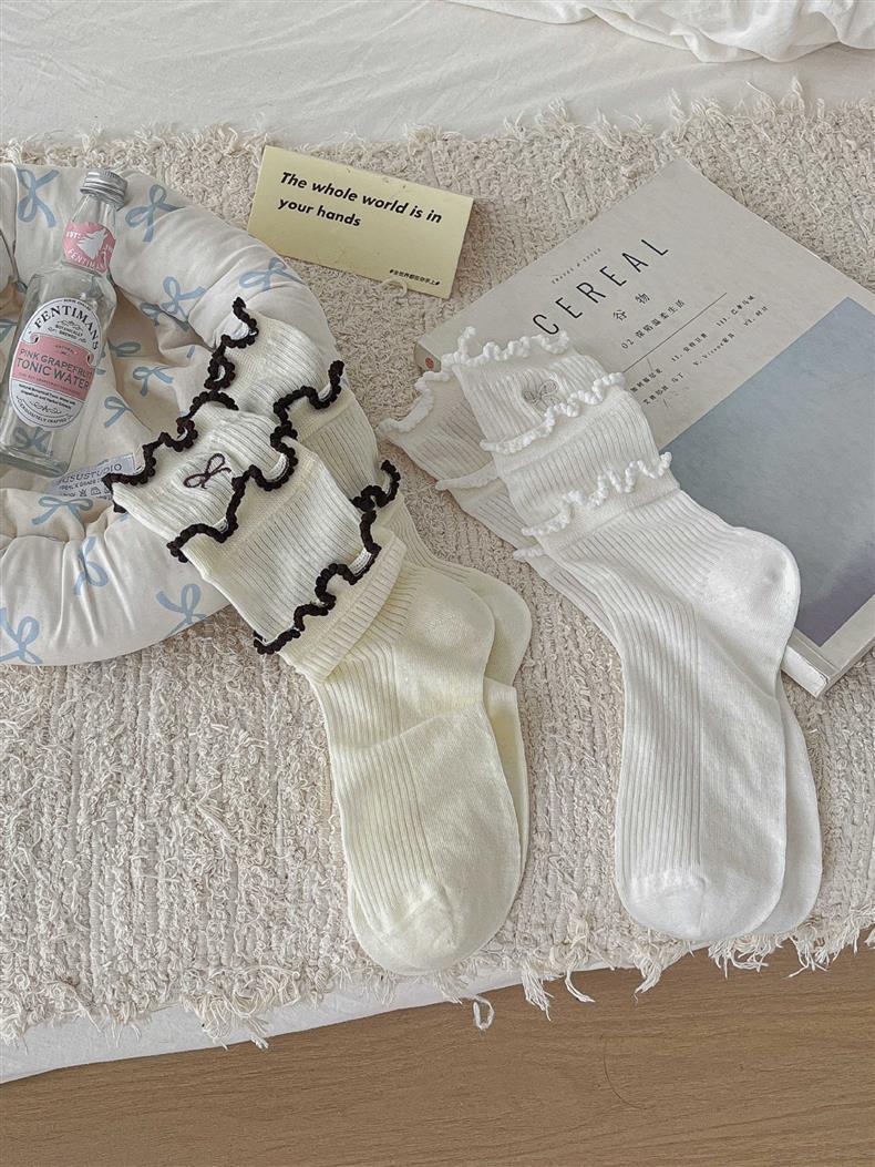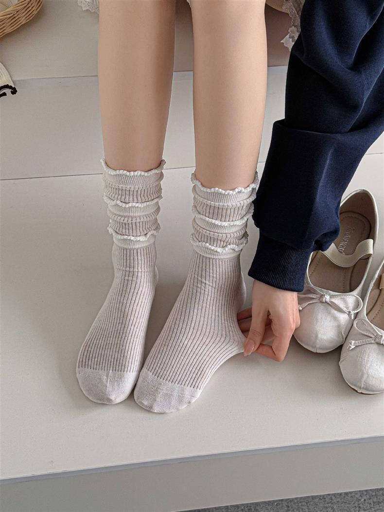 2025 새로운 한국식 케이크 레이스 양말 어린이 봄과 여름 얇은 튜브 양말 소녀 양말 공주 흰색 스타킹스토어 가기