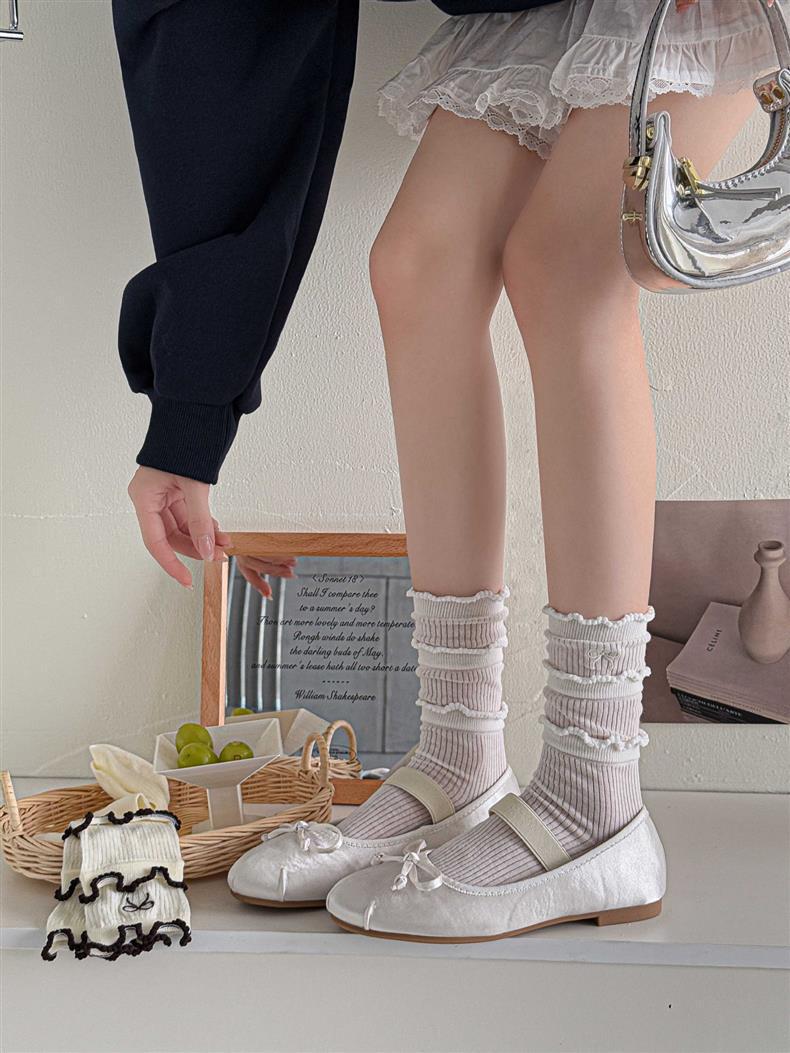 2025 새로운 한국식 케이크 레이스 양말 어린이 봄과 여름 얇은 튜브 양말 소녀 양말 공주 흰색 스타킹