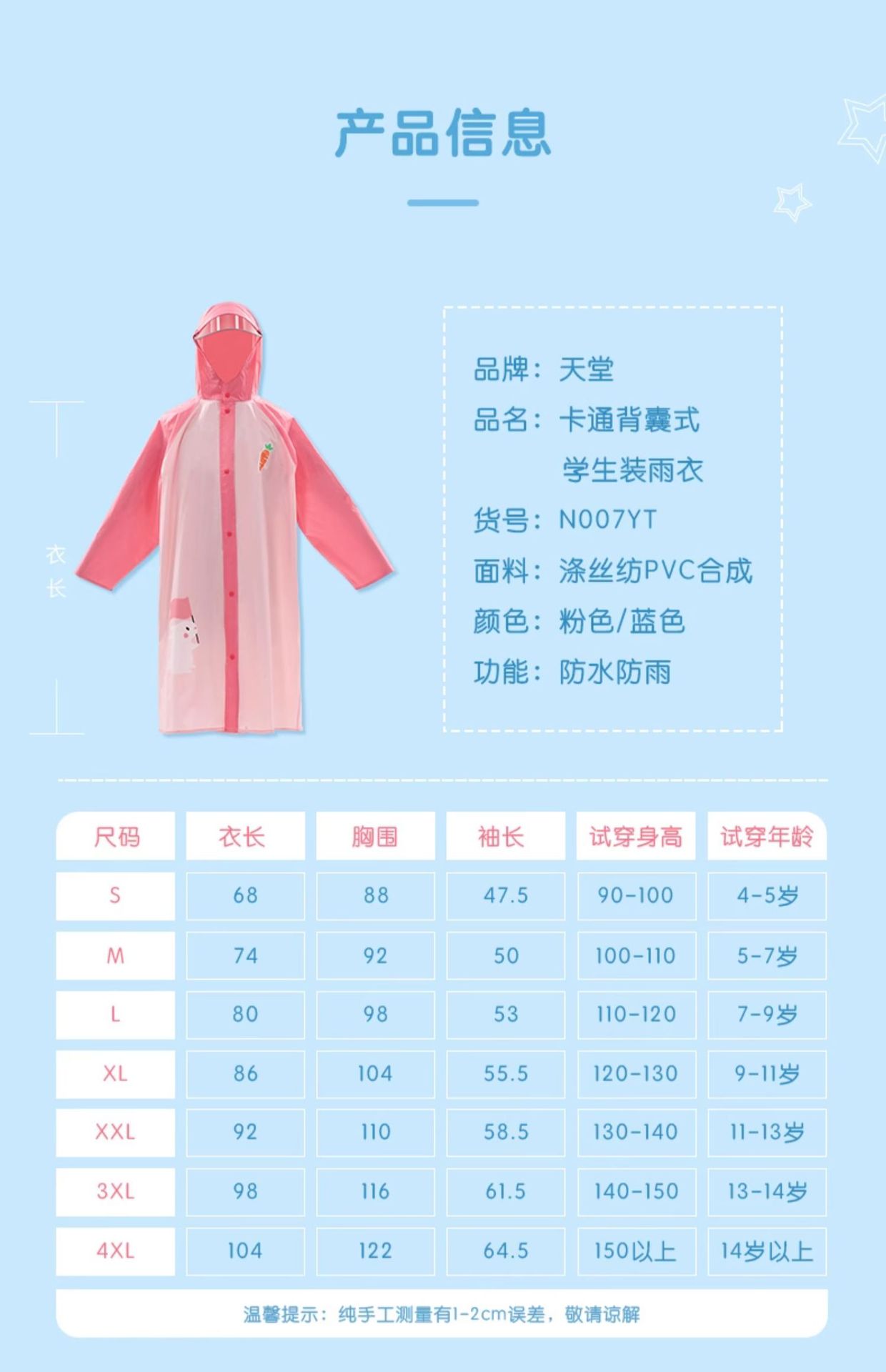 정품 파라다이스 N007YT 배낭 스타일 귀여운 어린이 비옷 학교 가방 학생 판초 남성과 여성 도매