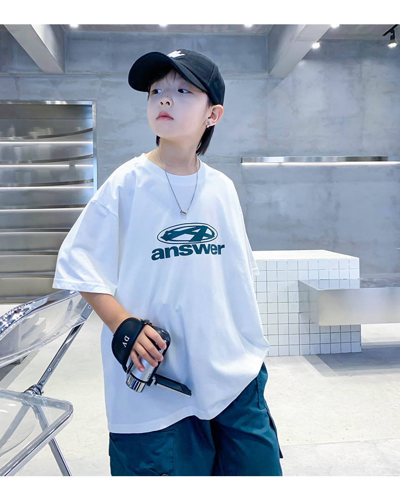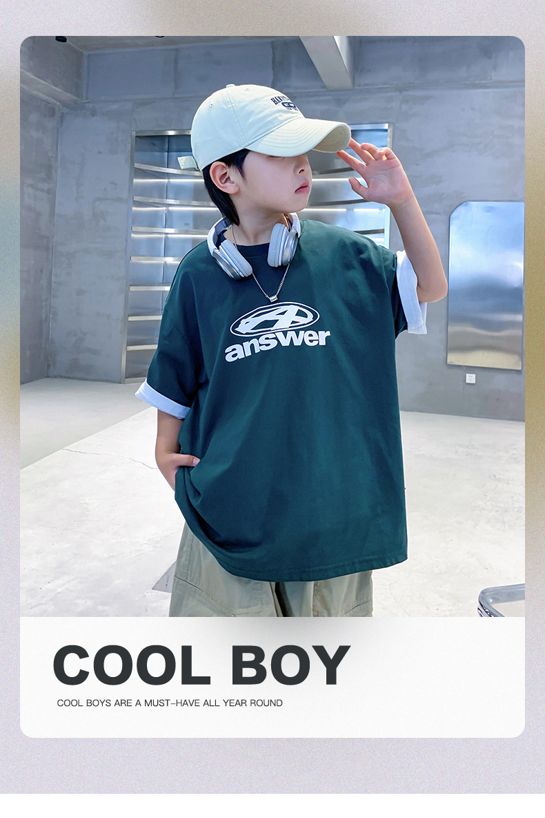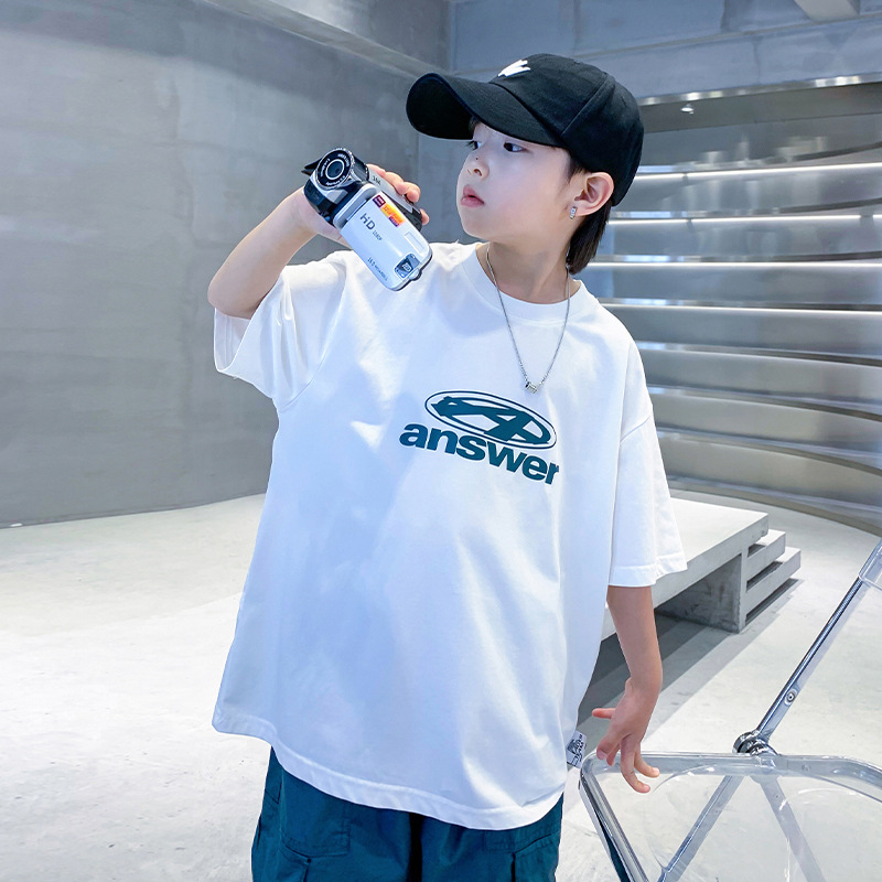 남학생 반팔 티셔츠 여름 2025 년 새 유행 어린이 반소매 중첩 어린이 여름 착용 얇은 느슨한 둥근 목 옷 T스토어 가기