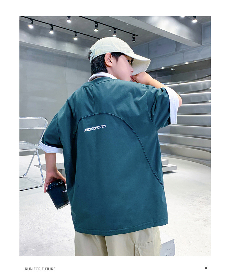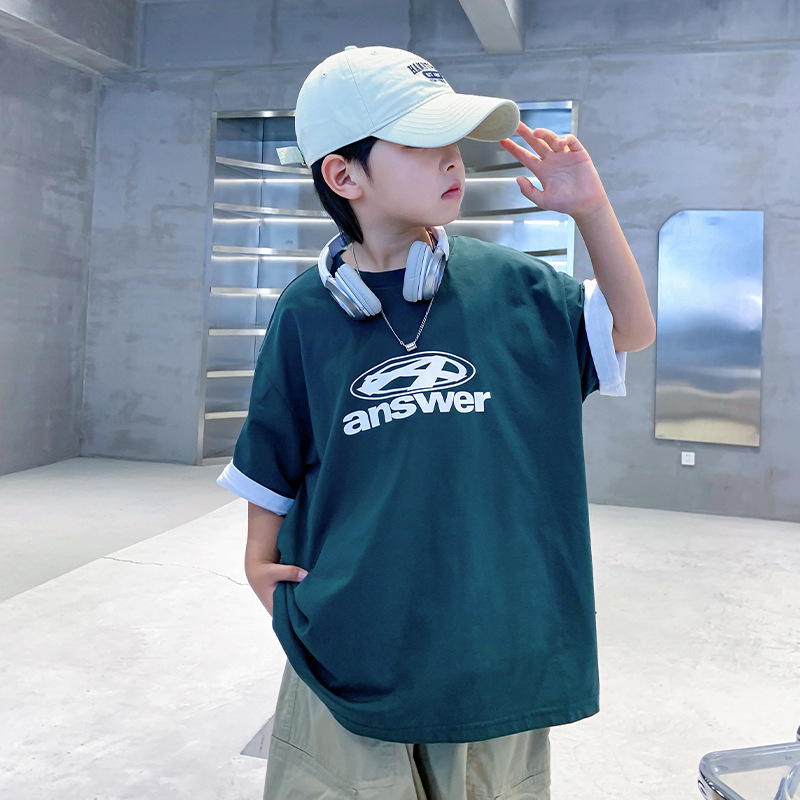 남학생 반팔 티셔츠 여름 2025 년 새 유행 어린이 반소매 중첩 어린이 여름 착용 얇은 느슨한 둥근 목 옷 T