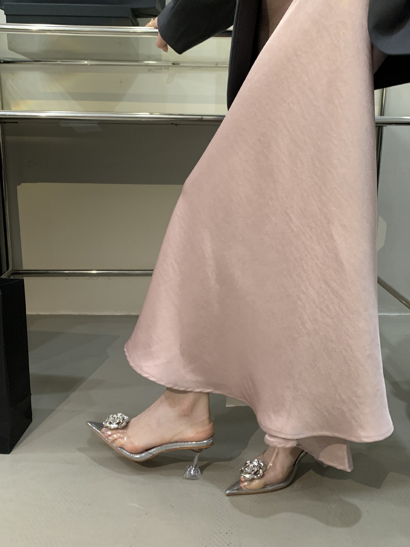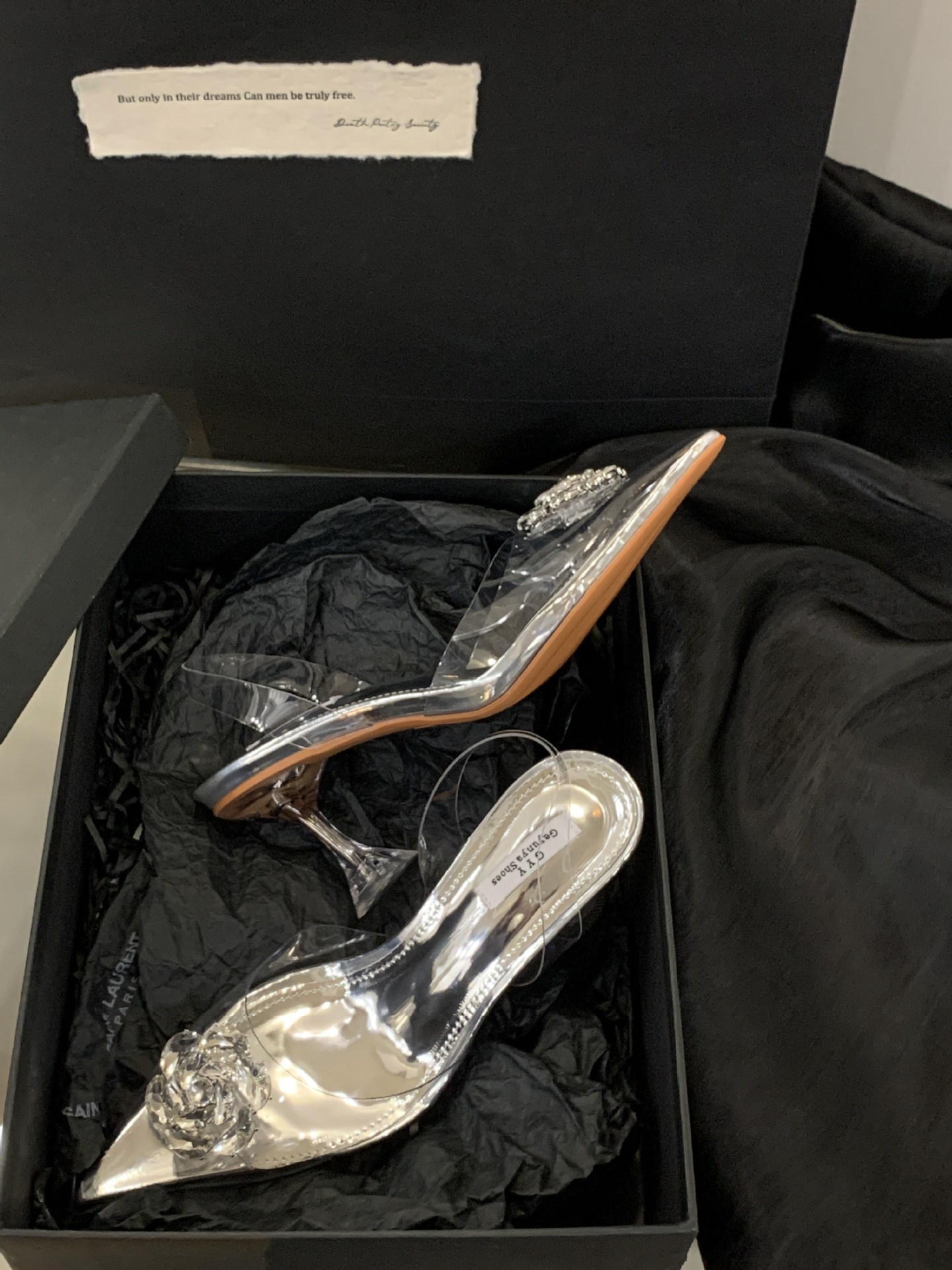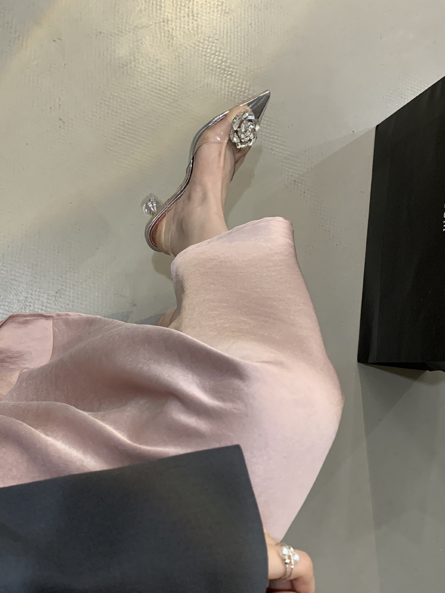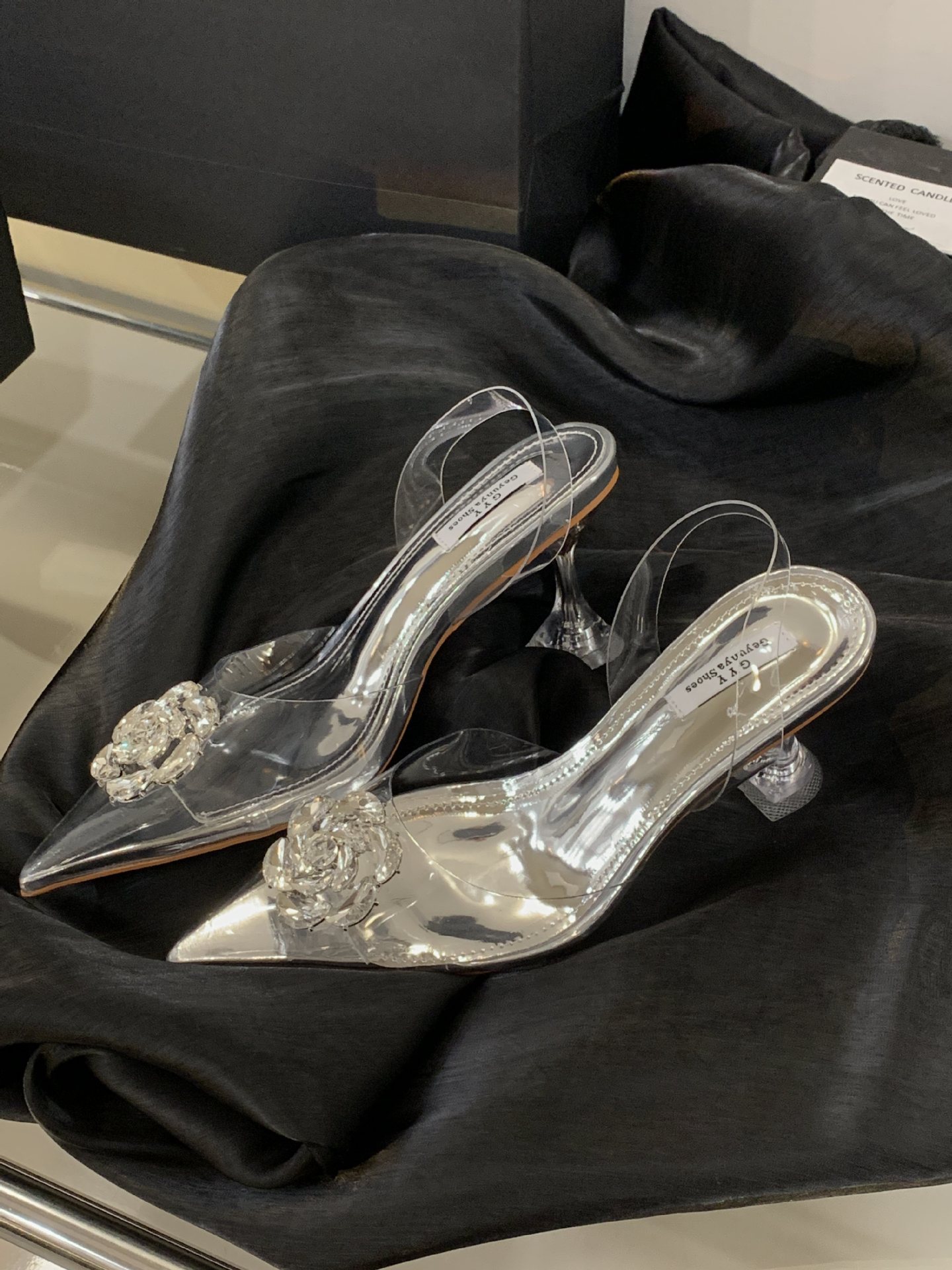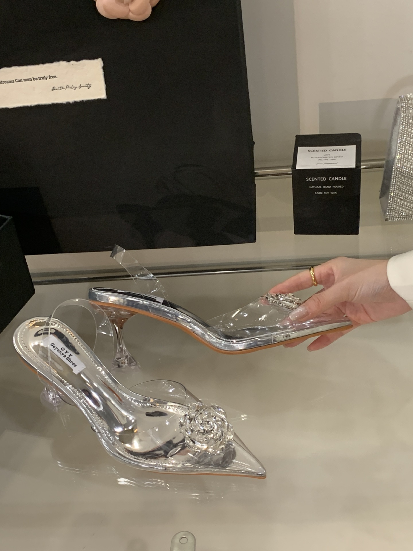 2025 투명 샌들 커버 헤드 라인 스톤 하이힐 여름 새 등 빈 얕은 입 달콤한 웨딩 슈즈 35-40스토어 가기