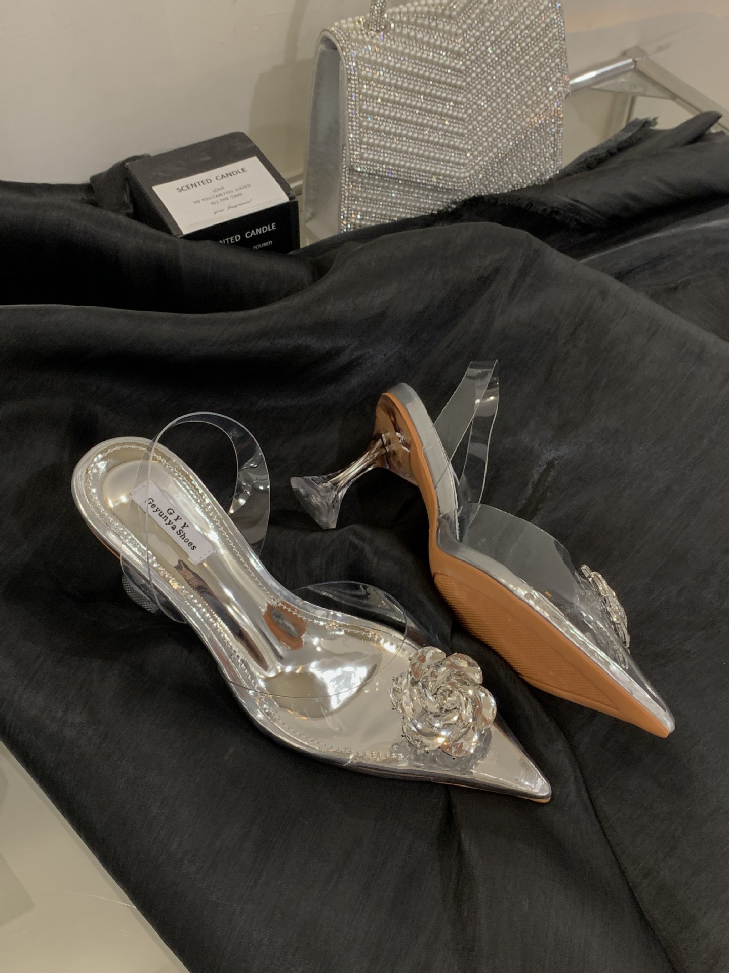 2025 투명 샌들 커버 헤드 라인 스톤 하이힐 여름 새 등 빈 얕은 입 달콤한 웨딩 슈즈 35-40
