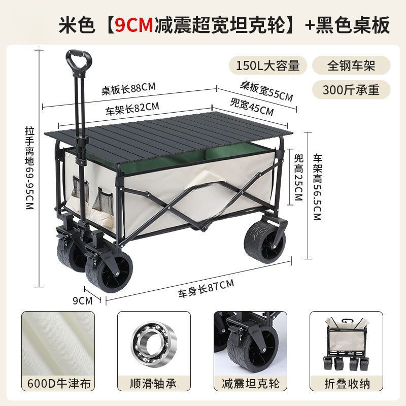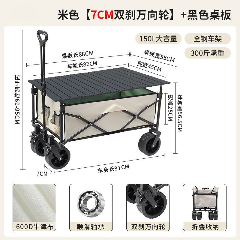 • 블랙 [이중 두꺼운 옥스포드 천] - 대형 / 8inch 오프로드 휠 / 더블 브레이크 / 티핑 버킷 스타일 + 블랙 테이블