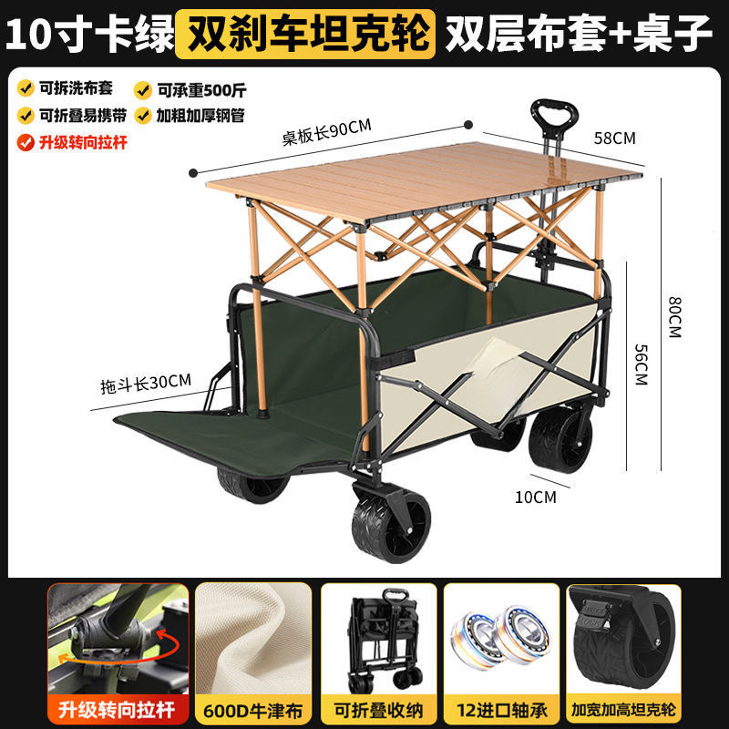 • 카드 그린 [이중 두꺼운 옥스포드 천] - 업그레이드/ 8inch 오프로드 휠/더블 브레이크 + 블랙 테이블