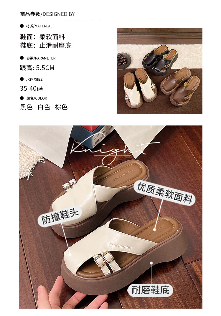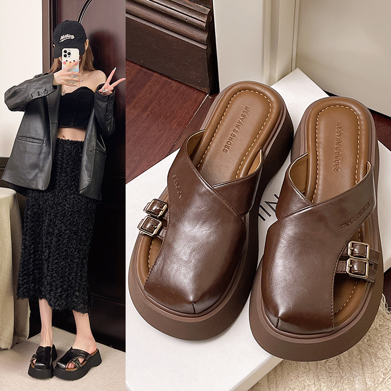 여성용 여름 아우터용 복고풍 바오터우 하프 슬리퍼 2025 새로운 초경량 두꺼운 밑창 샌들 및 슬리퍼 다용도 해변 로마 신발