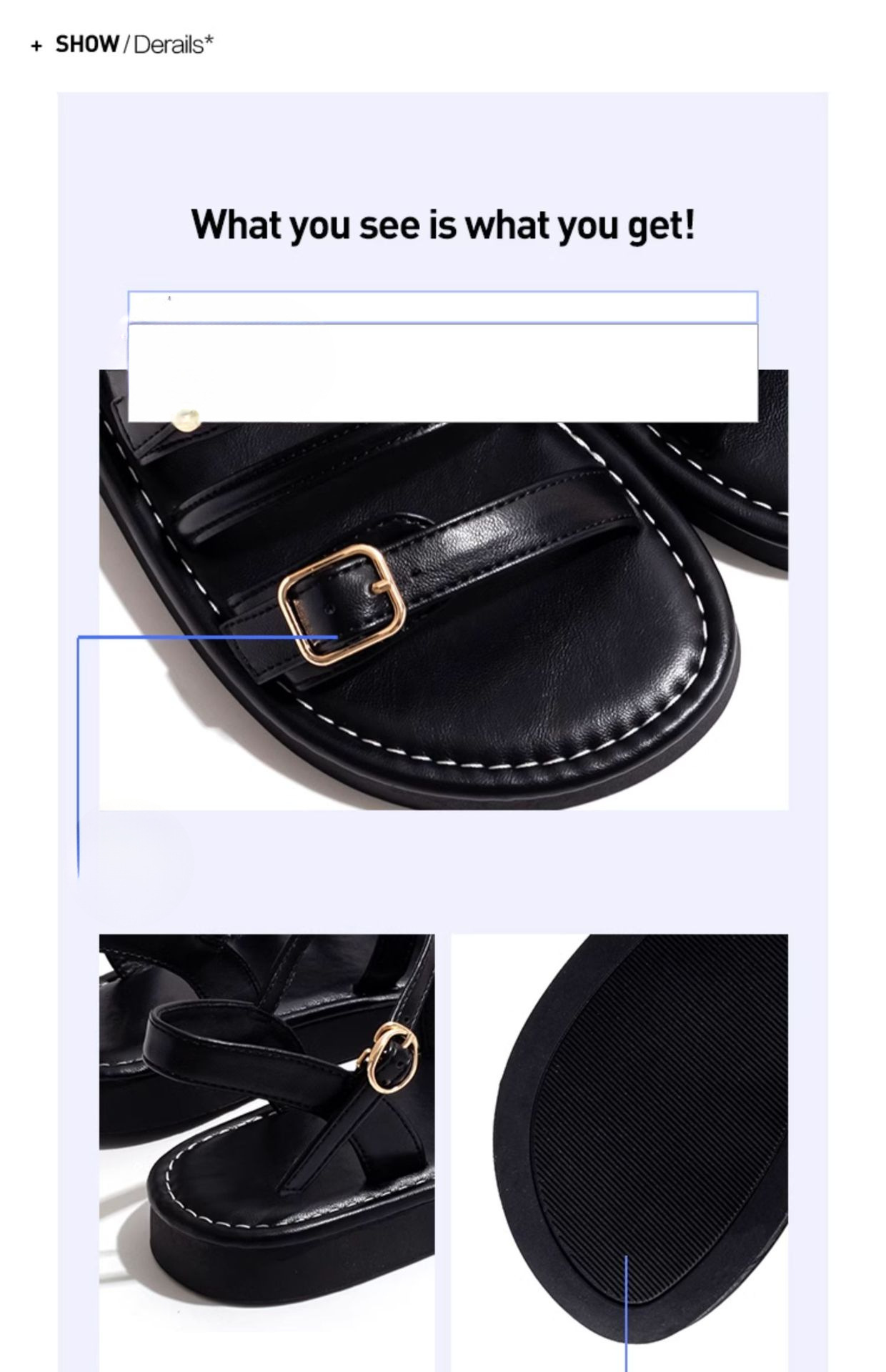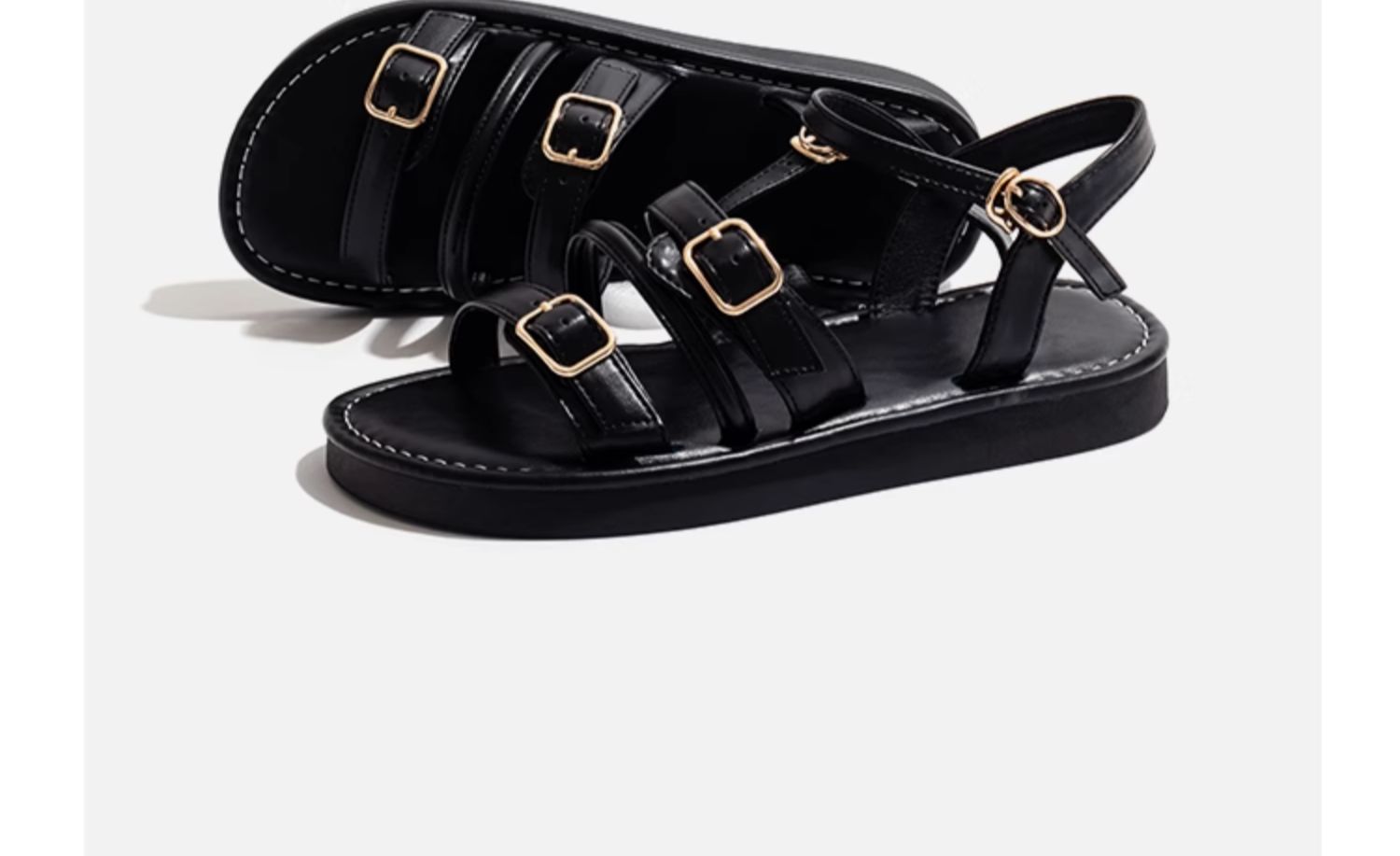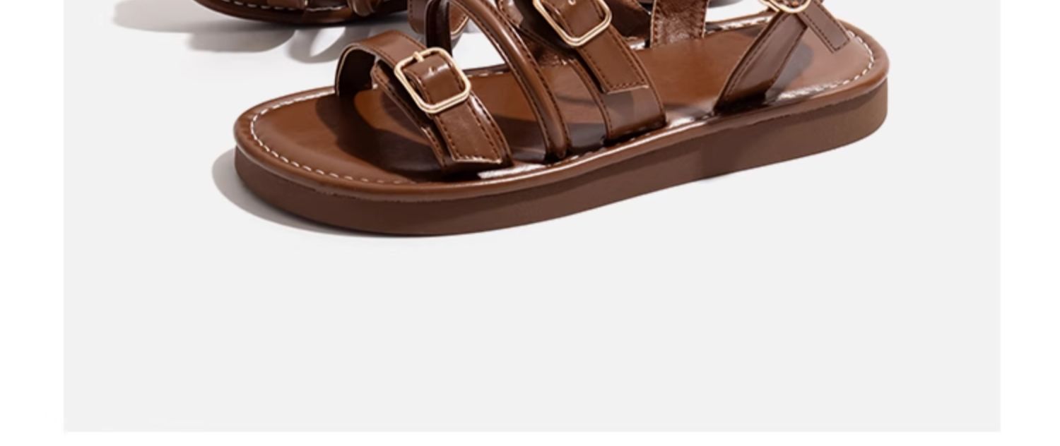 플랫 샌들 여성 2025 년 새로운 여름 아우터웨어 벨트 버클 오픈 토 로마 신발 소프트 단독 패션 비치 신발스토어 가기