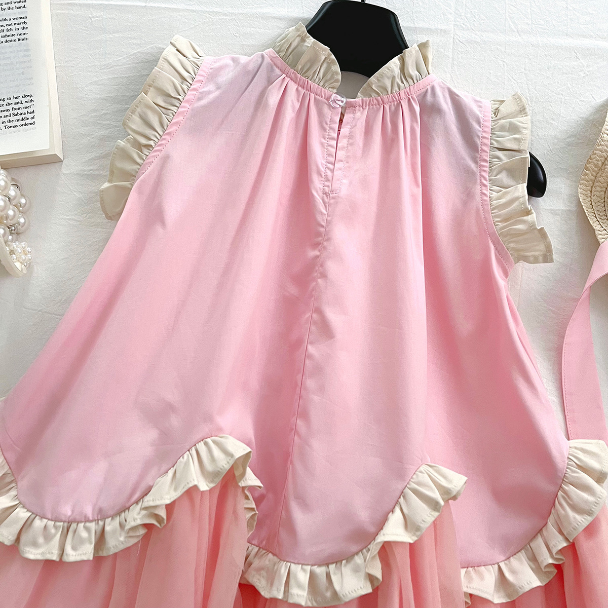 여름 2025 새로운 한국 스타일 소녀의 레이스 민소매 메쉬 원피스 소녀의 공주 원피스스토어 가기