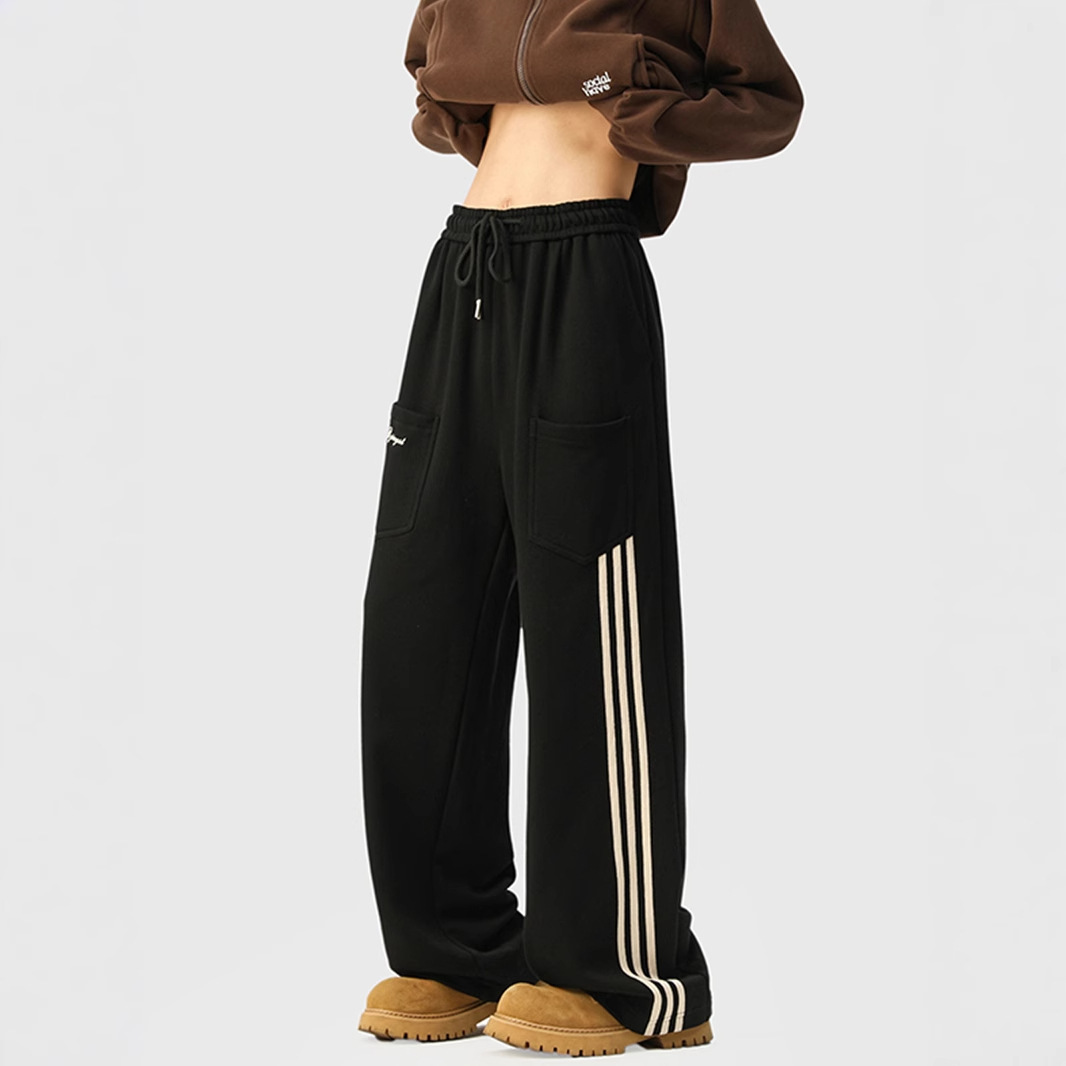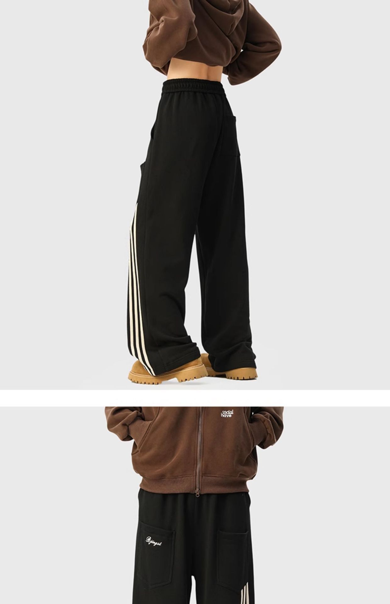 미국 컬러 스트라이프 캐주얼 바지 남녀 봄 새로운 미국 스포츠 바지 느슨한 스트레이트 와이드 다리 긴 바지스토어 가기
