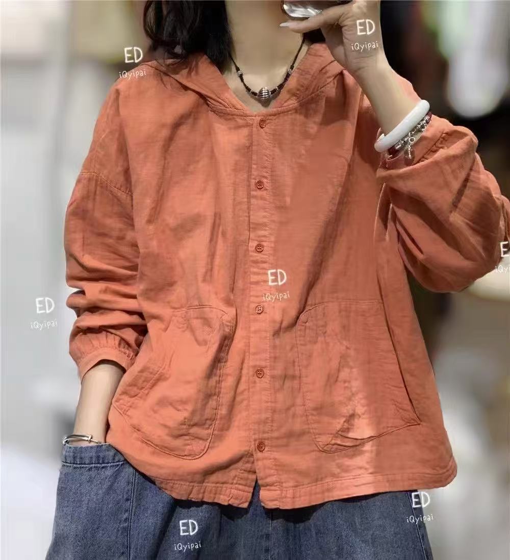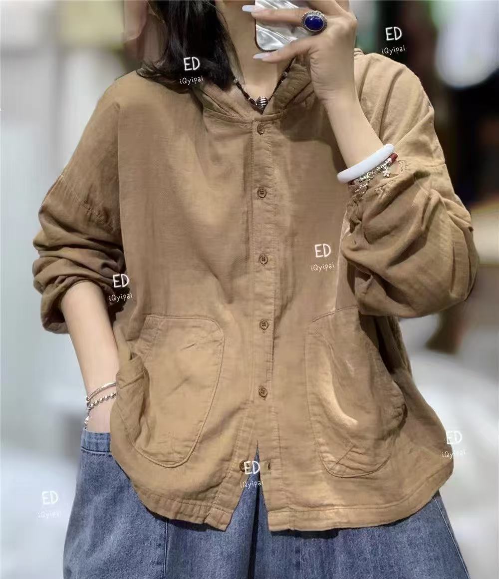봄 2025 한국 스타일 느슨한 나이 감소 더 높은 포켓 후드 셔츠 카디건 올 매치 캐주얼 셔츠 여자 3751