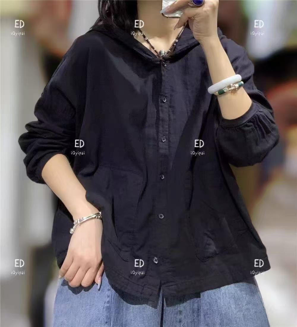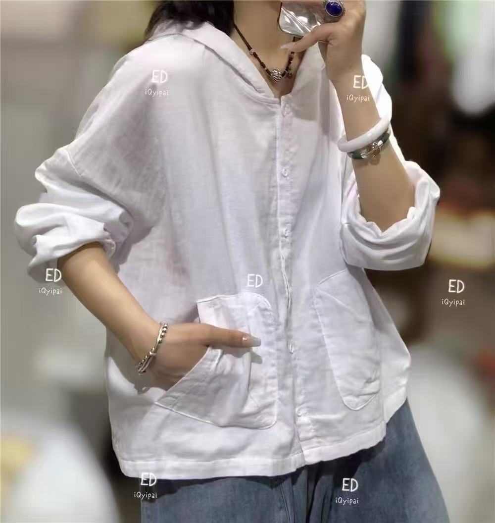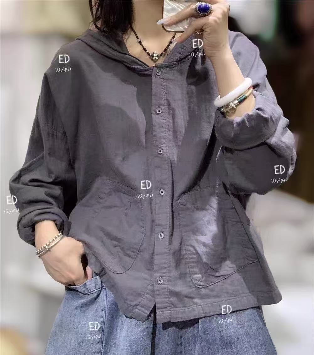 봄 2025 한국 스타일 느슨한 나이 감소 더 높은 포켓 후드 셔츠 카디건 올 매치 캐주얼 셔츠 여자 3751스토어 가기