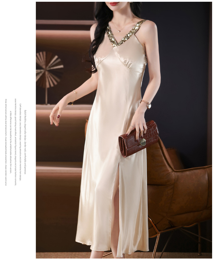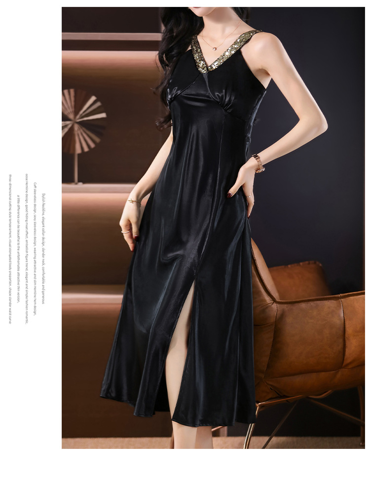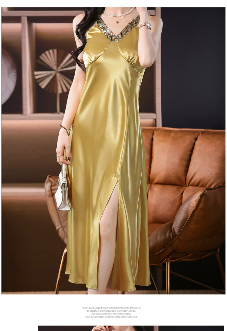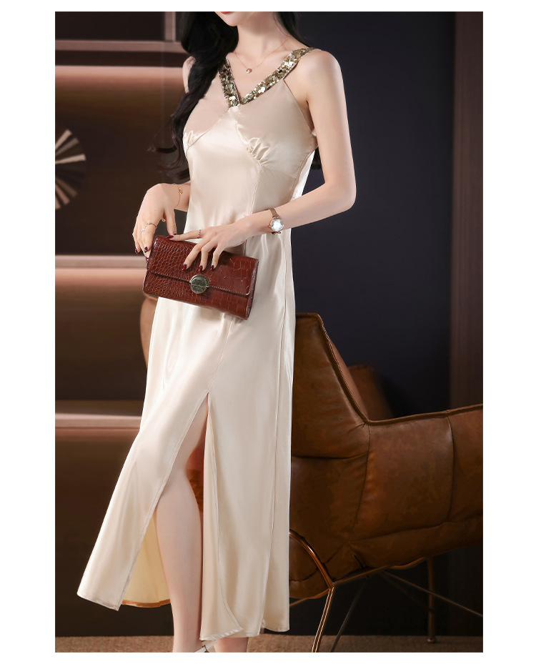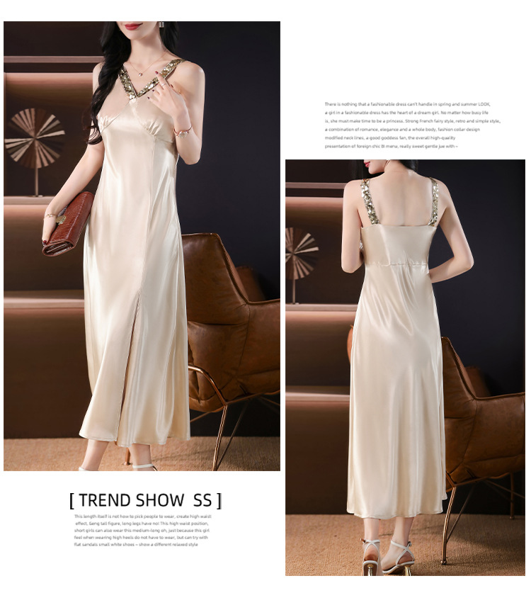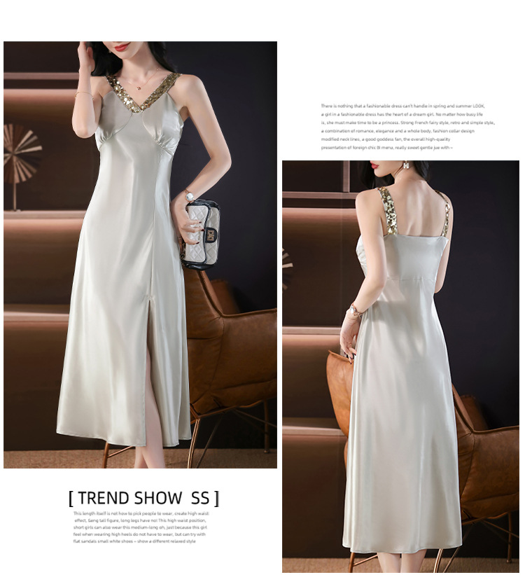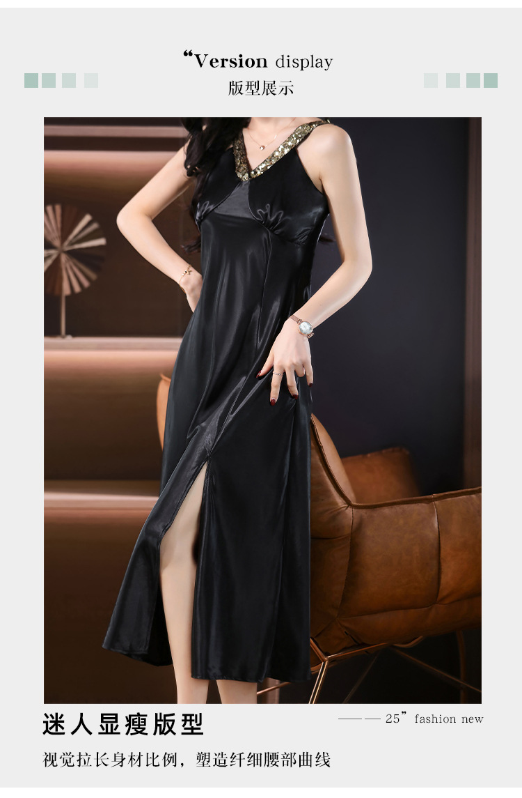 2025 새로운 고급 수제 Sequins 섹시한 우아한 스트랩 원피스 솔리드 컬러 슬림핏 슬리밍 스플릿 바이스 원피스스토어 가기