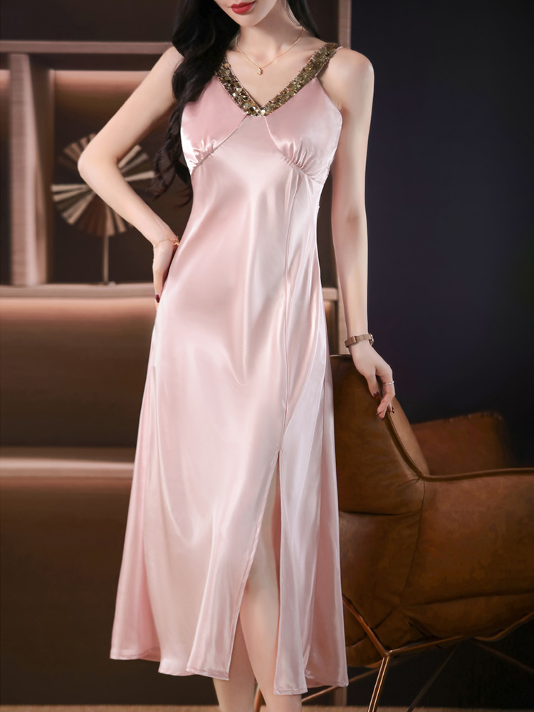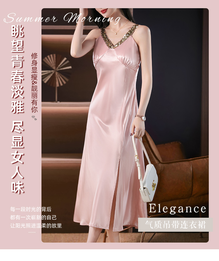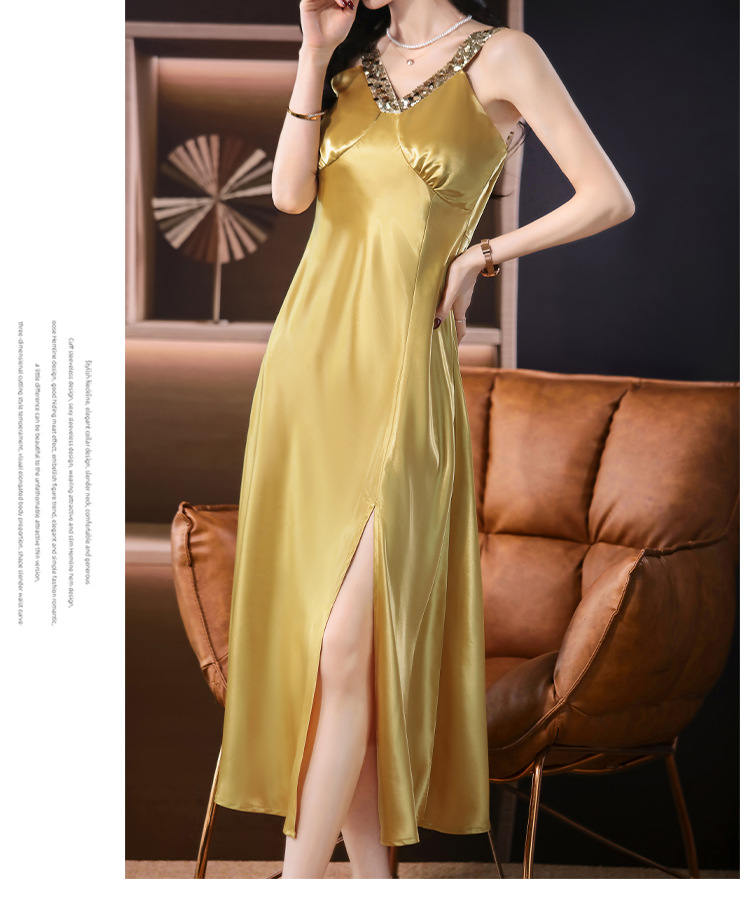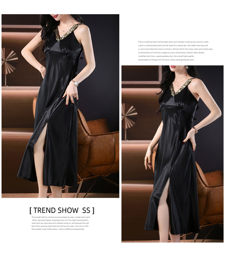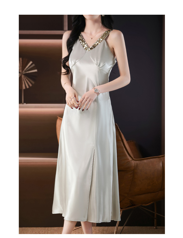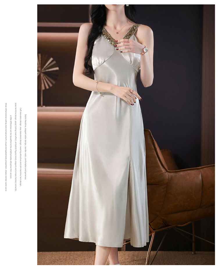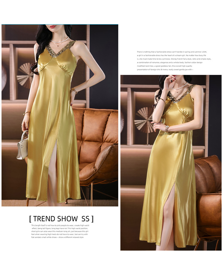 2025 새로운 고급 수제 Sequins 섹시한 우아한 스트랩 원피스 솔리드 컬러 슬림핏 슬리밍 스플릿 바이스 원피스스토어 가기