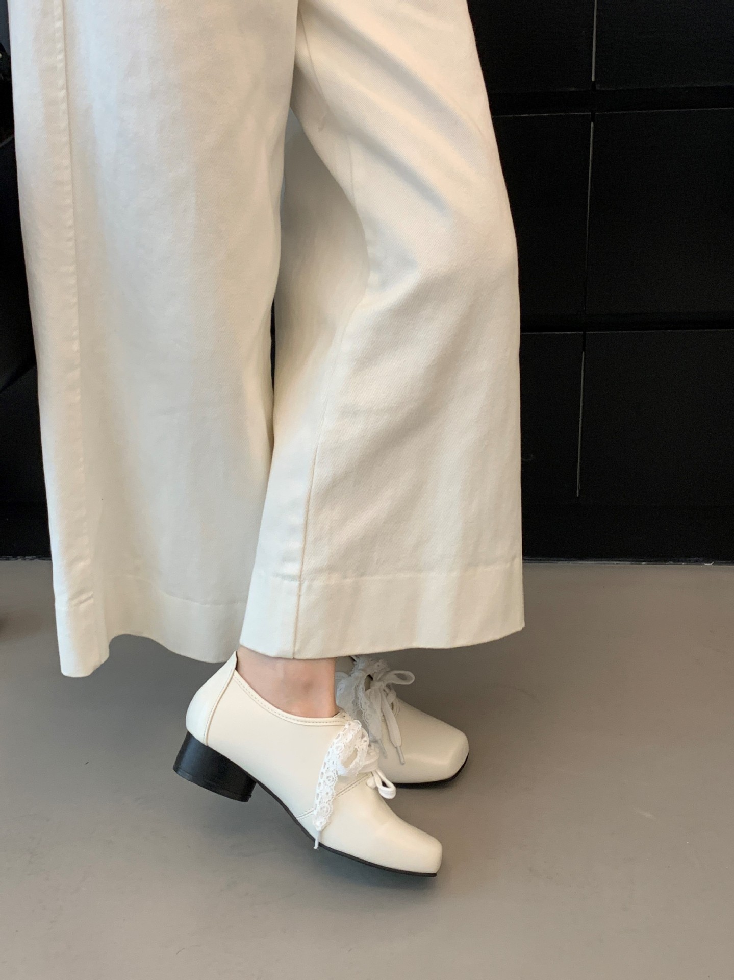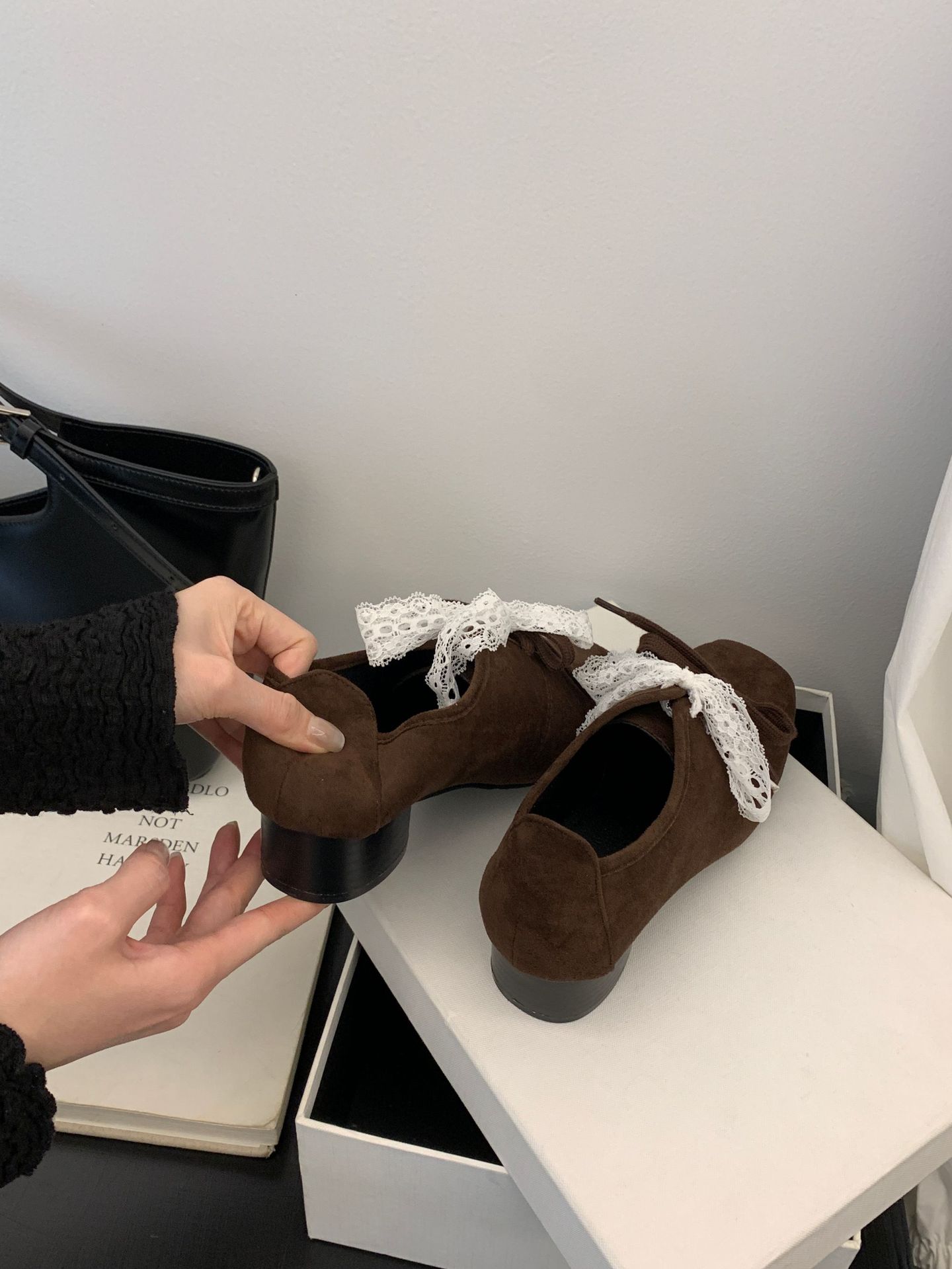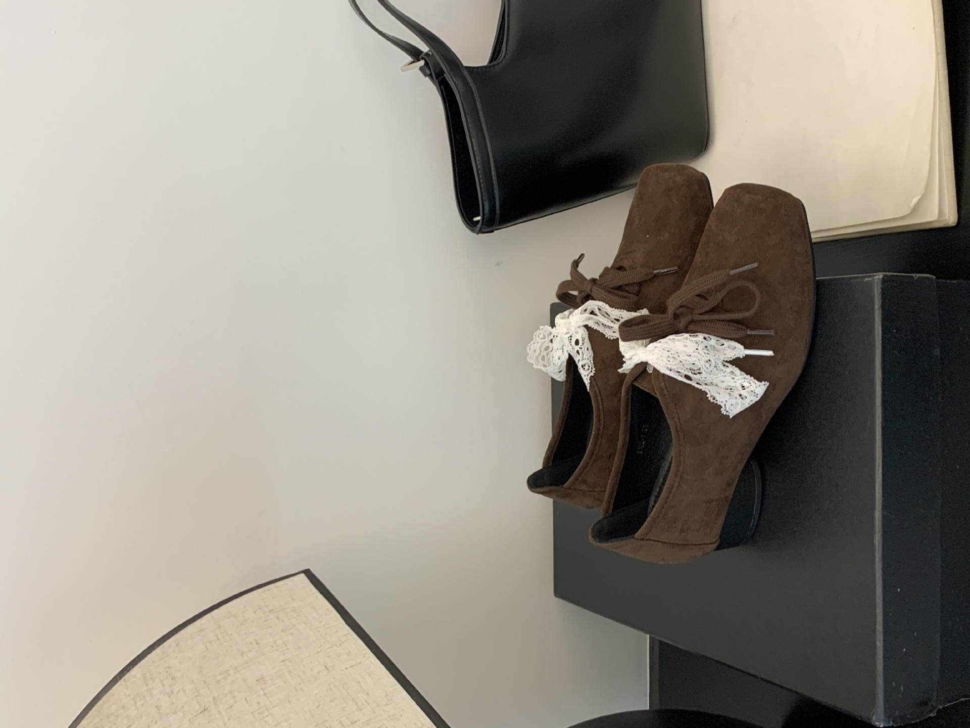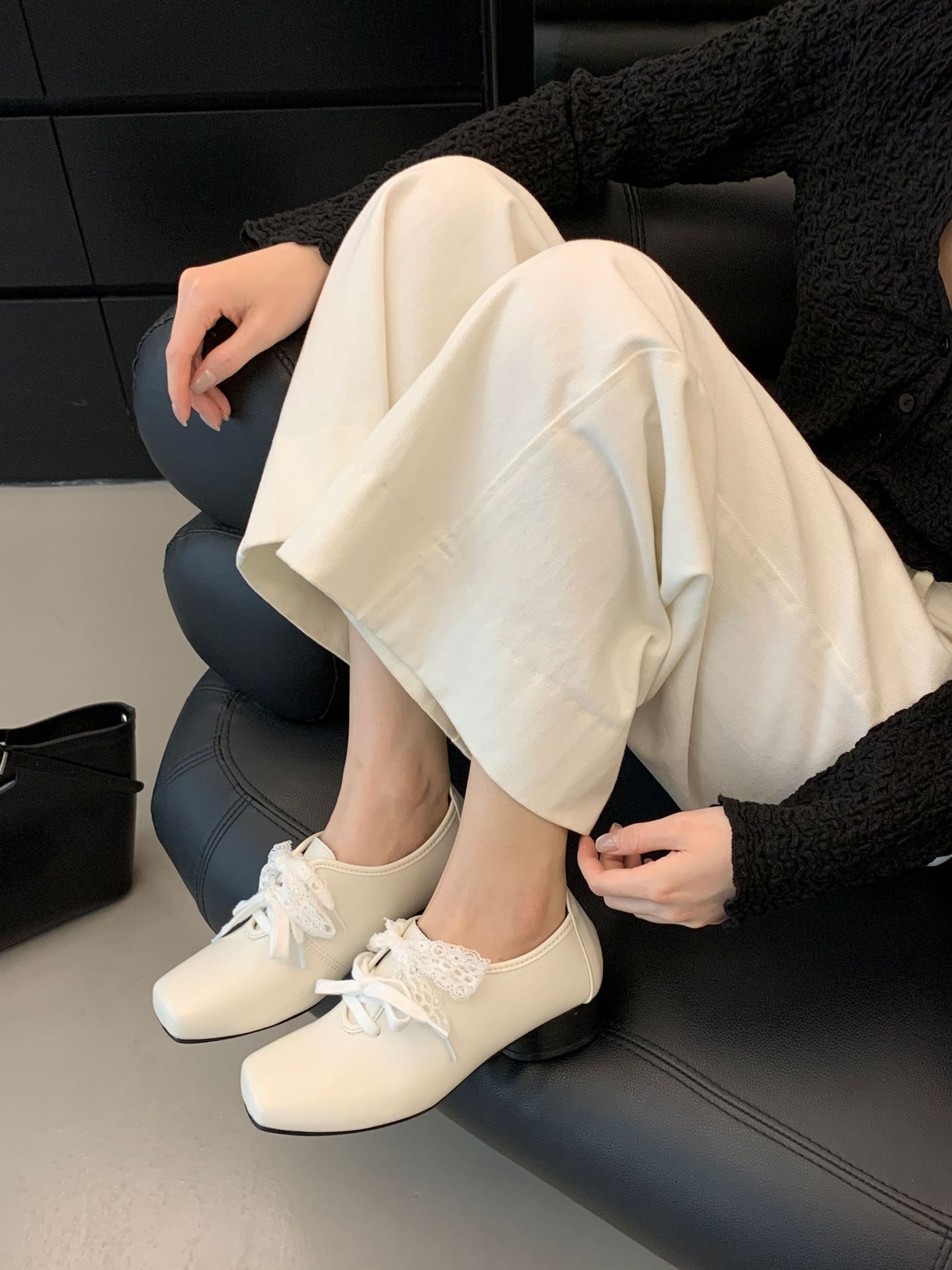 대학 스타일 복고풍 반투명 2025 레이스 업 메리 제인 작은 가죽 신발 여성용 다용도 두꺼운 굽 스퀘어 토 딥 슈즈
