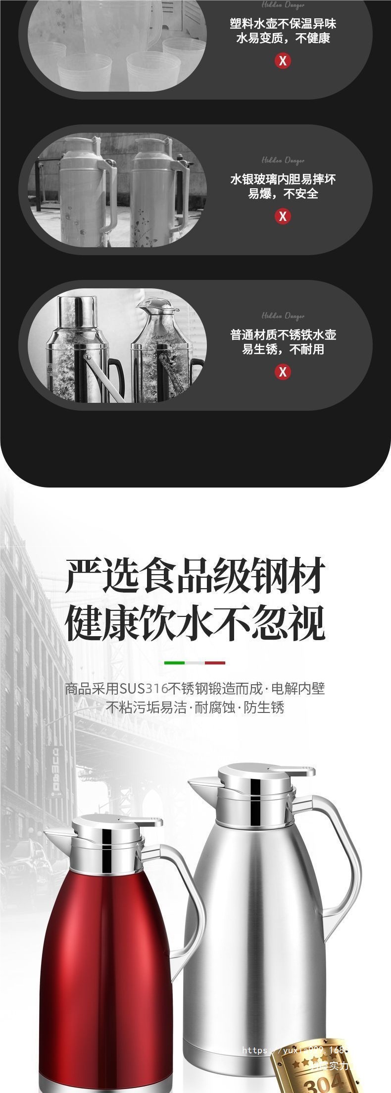316 스테인레스 스틸 열 보존 주전자 온수 병 가정용 상업용 안티 스케일 더블 레이어 열 보존 컵 열 냄비스토어 가기