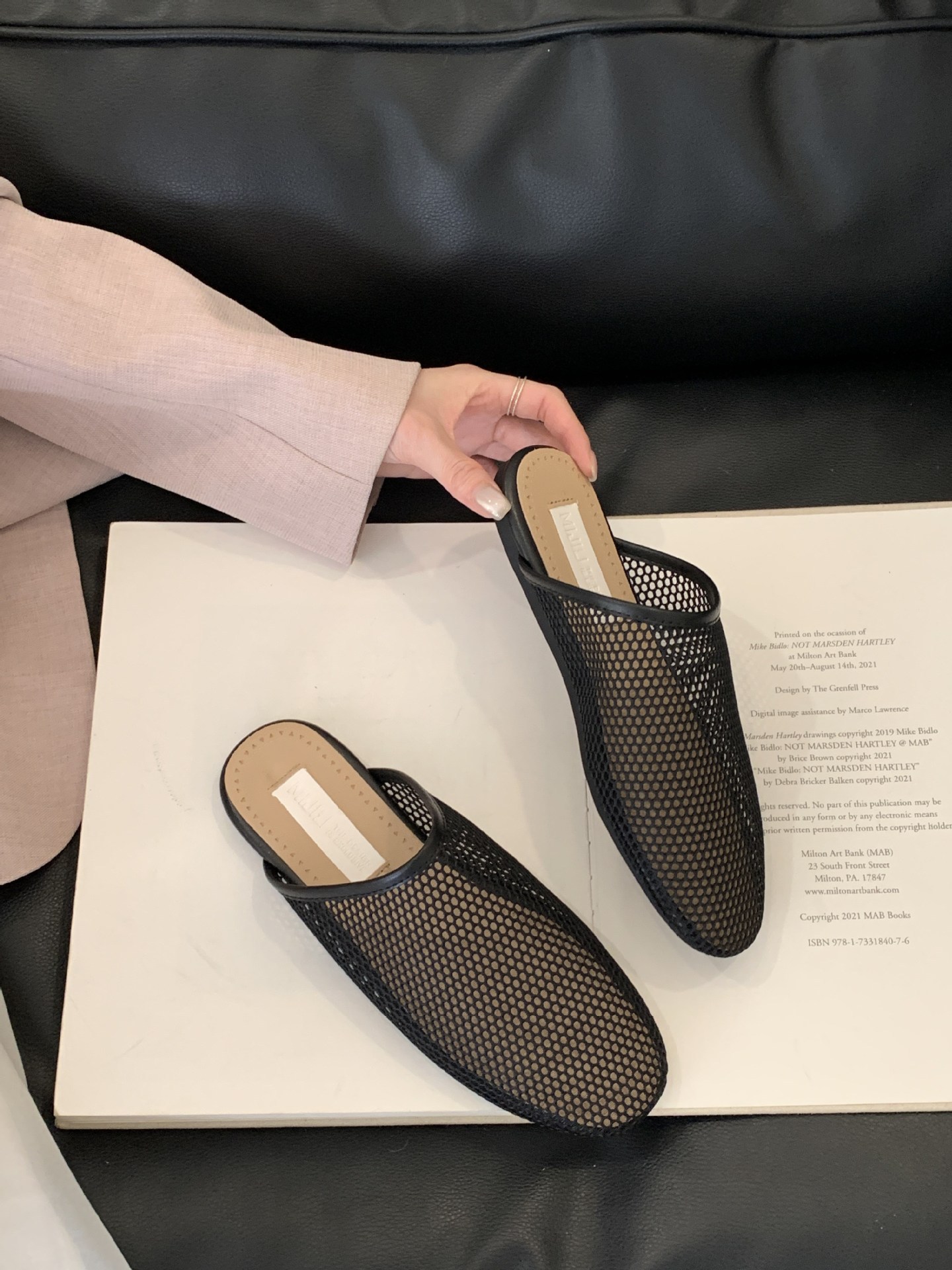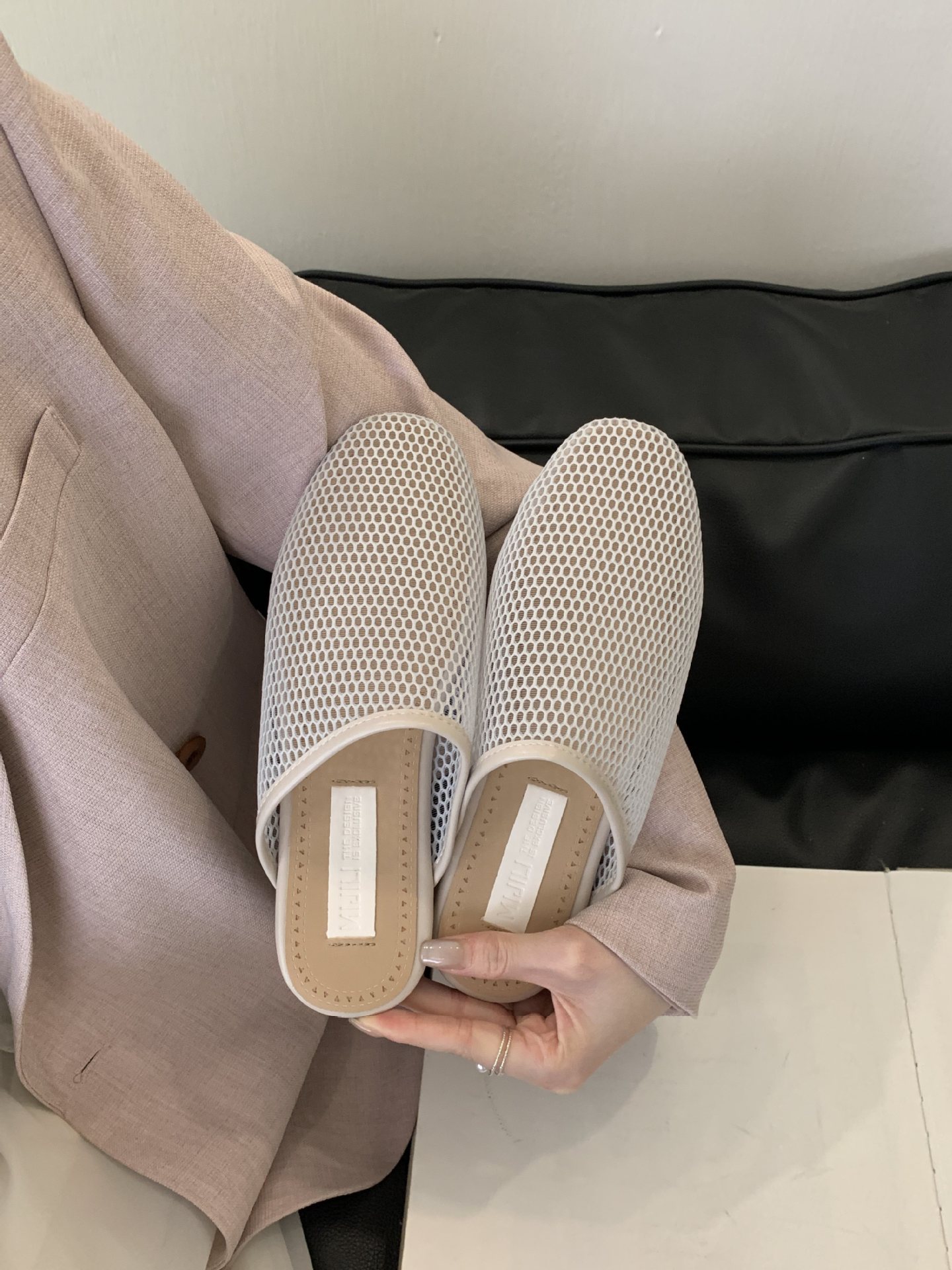 2025년 초봄 새로운 틈새 플랫 소프트 솔 메쉬 샌들 및 슬리퍼 여성용 중공 비치 로마 신발스토어 가기