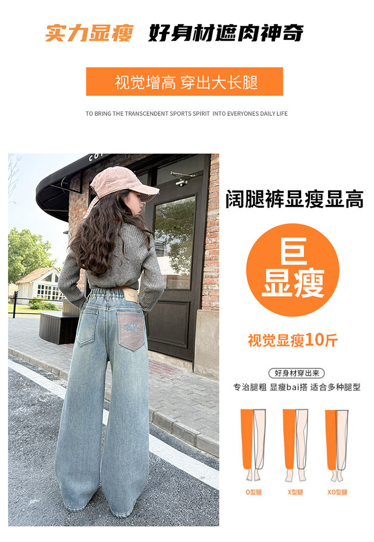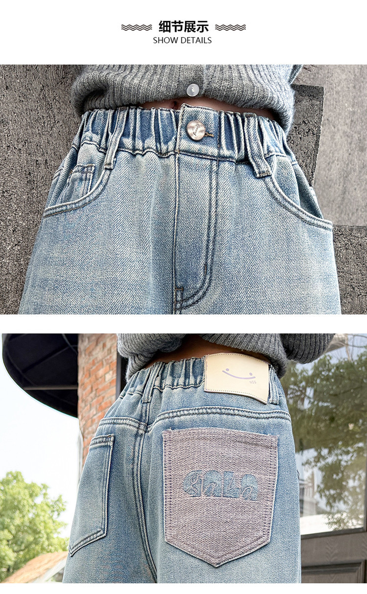 봄과 가을 여아 청바지, 아동 패셔너블 루즈 와이드 팬츠, 중대형 아동 바지, 스트레이트 팬츠, 와이드 팬츠, 아동 바지스토어 가기