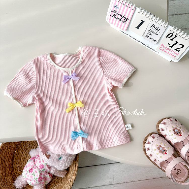 2025 여자 반팔 티셔츠 여름 새로운 도착 서양 스타일 아기 소녀 달콤한 귀여운 만화 공주 탑